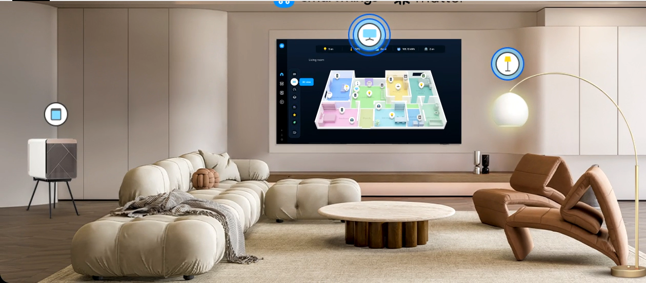 S integrovaným SmartThings Hub ľahko prepojíš a prispôsobíš si všetky inteligentné zariadenia kompatibilné so SmartThings. Ovládaj celú domácnosť zo svojej TV.