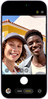 Nová predná kamera ti prináša flexibilné možnosti kompozície fotiek a videí. Klepnutím rozšíriš zorné pole a zmeníš formát z výškového na šírku bez otáčania iPhonu. A keď sa do záberu pridajú kamaráti, zorné pole sa rozšíri tak, aby sa vás na selfie vošlo viac.