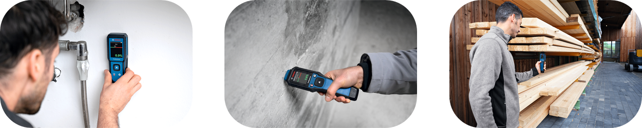 Vlhkomery Bosch GMP 1-13 Professional a Bosch GMP 2-15 Professional invazívne merajú obsah vlhkosti v dreve a stavebných materiáloch pomocou sond. Profesionáli, ako sú tesári a podlahári, ich používajú na kontrolu, či je prichádzajúce drevo dostatočne suché na ďalšie spracovanie; maliari zabezpečujú, aby boli povrchy pripravené na tapetovanie alebo maľovanie. Architekti, správcovia budov a stavební inšpektori používajú zariadenia na posúdenie stavebných konštrukcií, zisťovanie poškodenia vlhkosťou a prevenciu rastu plesní.