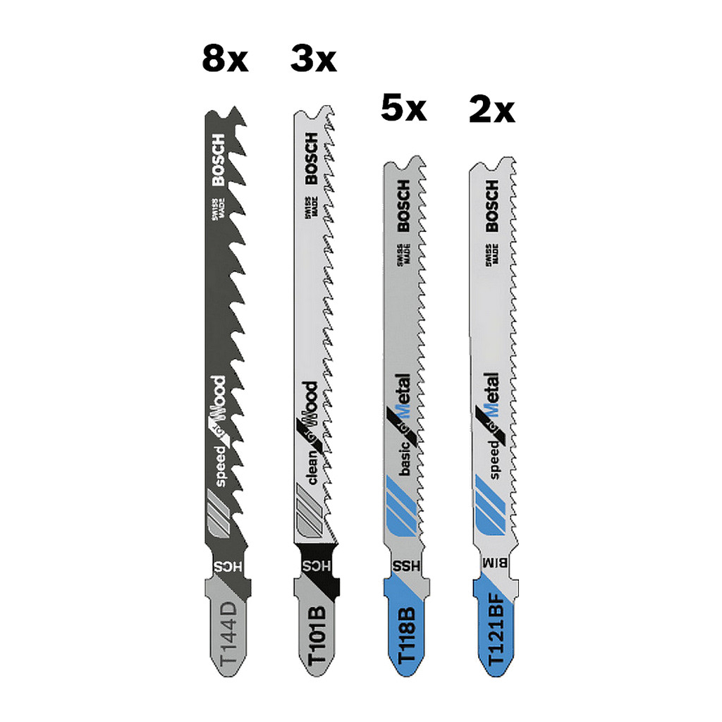 8x Pílový list Bosch Speed for Wood T 144 D3x Pílový list Bosch Clean for Wood T 101 B