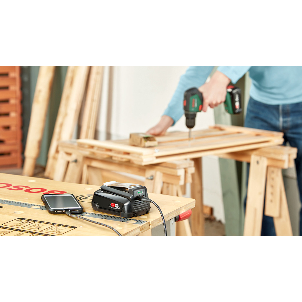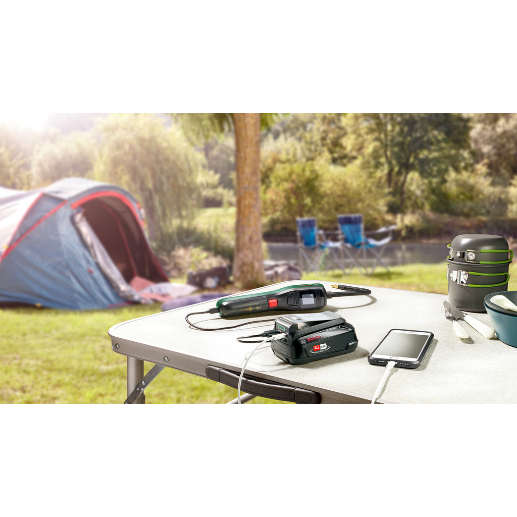 - Všestranný akumulátorový adaptér 18 V s funkciou powerbanky