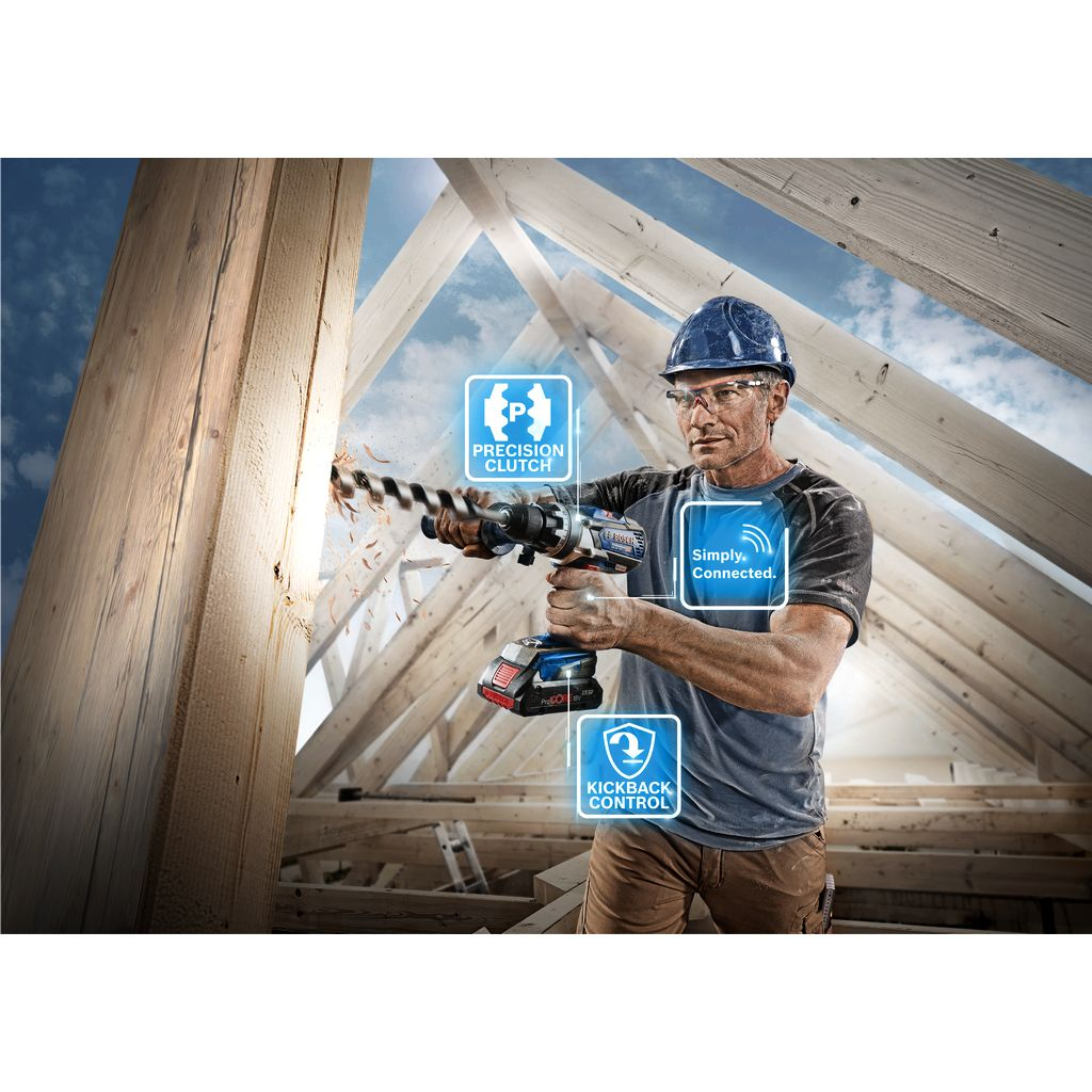GSR 18V-110 C Professional je extrémne výkonná a robustná akumulátorová vŕtačka z 18-voltovej triedy Bosch s bezuhlíkovým motorom. Jej maximálny krútiaci moment 110 Nm a bezuhlíkový motor robia z vŕtačky/skrutkovača mimoriadne výkonné elektrické náradie. Vďaka celokovovému skľučovadlu je skrutkovač veľmi odolný a je vhodný aj pre najtvrdšie použitie na pracovisku. Je tiež vybavený možnosťou pripojenia Bluetooth a možno ho pripojiť priamo k smartfónu pre ďalšie ovládanie náradia. Toto elektrické náradie je určené na vŕtanie do dreva s maximálnym priemerom 82 mm, do ocele do 13 mm a pre priemery skrutiek do 12 mm. Náradie je kompatibilné so všetkými 18-voltovými batériami a nabíjačkami Bosch Professional (Professional 18V System). GSR 18V-110 C Professional má tiež 2 prevodové stupne, Autolock, KickBack Control, elektronickú ochranu motora, rukoväť, lítium-iónovú batériu a presnú spojku. Kompatibilné so systémom Bosch Professional 18V a alianciou batérií AMPShare pre viaceré značky.