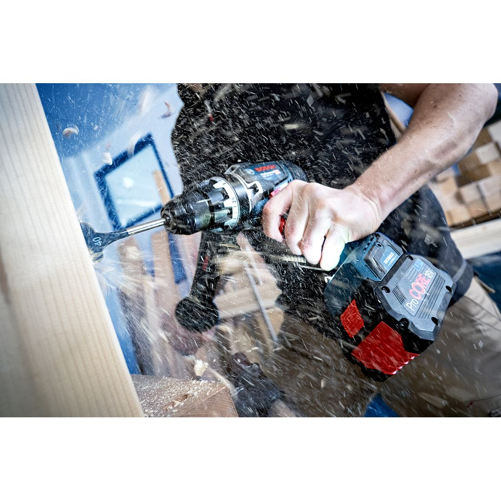 Bosch GSR 18V-150 C Professional je inteligentný vŕtací skrutkovač s bezkonkurenčným výkonom a ovládaním na široký rozsah skrutkovacích a vŕtacích prác. Je vynikajúcim náradím na extrémne rýchlu prácu vďaka mimoriadne výkonným akumulátorom ProCORE18V a bezuhlíkovému motoru s technológiou BITURBO; ponúka maximálny krútiaci moment 150 Nm. Presná funkcia Electronic Angle Detection vždy zaručí správny uhol dlhých skrutiek a vypínateľná funkcia KickBack Control na prácu s vykružovacími pílami znižuje riziko náhleho rázu pri zaseknutí nástroja. Vďaka kovovému skľučovadlu a kovovej prevodovke je tento vŕtací skrutkovač extrémne spoľahlivý a robustný pri každej práci. Bosch GSR 18V-150 C Professional dosahuje optimálne výsledky pri skrutkovaní a vŕtaní do dreva a kovu, a to najmä pri vŕtaní väčších priemerov, napr. s vykružovacími pílami priemeru až 102 mm.