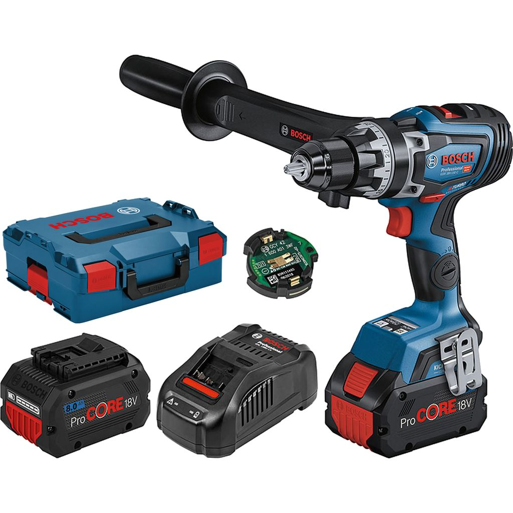 2 Li-Ion akumulátory 8,0 Ah, Rýchlonabíjačka, Modul Bluetooth Low Energy GCY 42 Professional, Prídavná rukoväť 160202507Y, Balenie L-BOXX 136