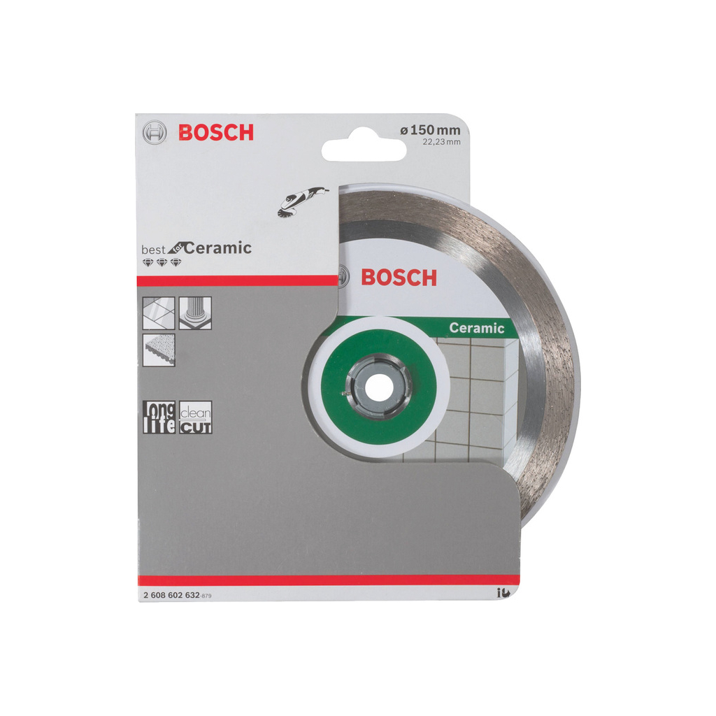 Diamantový kotúč Bosch má vysokú životnosť: výška segmentu je 10 mmPri rezaní sa hrany nevyštrbujú, rez je kvalitný aj keď sa reže napr. tvrdá kameninová doska či mramor