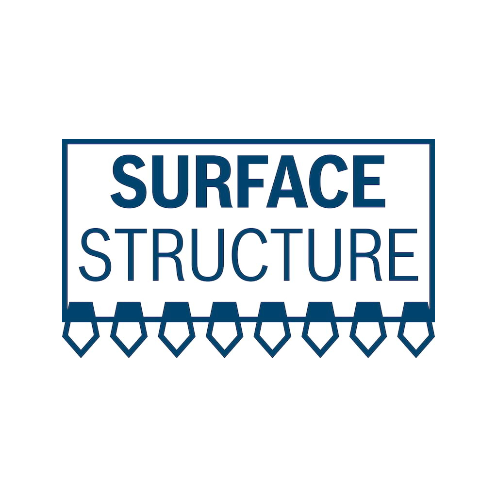 Surface Structure Bosch Surface Structure kombinuje pokročilé techniky spájania a natierania povrchu. Vďaka nášmu nezanášajúcemu sa náteru sa počas brúsenia hromadí menej prachu a zrno je stále rovnako účinné. Kombinácia so silným a pružným spojivom zaistí vysoko produktívnu prácu počas dlhej životnosti.