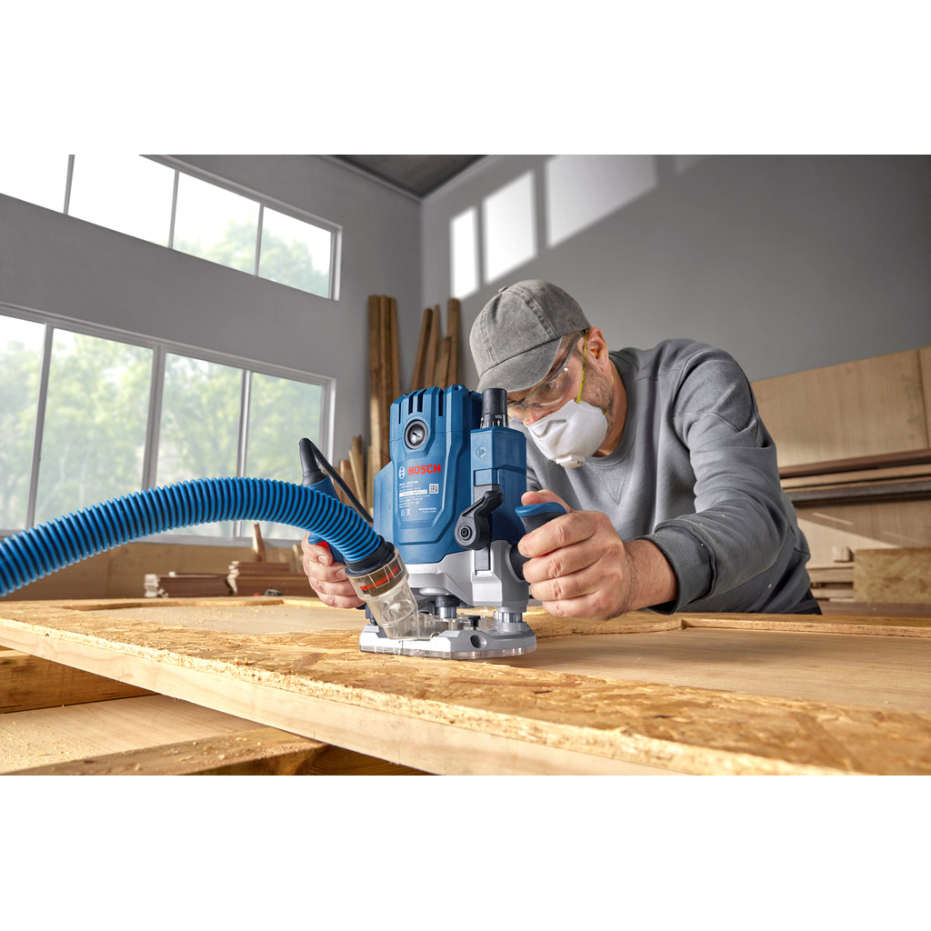 Horná fréza Bosch GOF 20-12 Professional je ideálna na vysokovýkonné frézovanie. Či už frézujete hlboké drážky, otvory alebo drážky do tvrdého dreva, pracujete podľa vodiacich šablón, zrážate hrany na preglejke alebo vytvárate detailné profily hrán, toto náradie Bosch je všestranné a zvládne vykonať každú prácu. Bosch GOF 20-12 Professional disponuje ovládačom rýchlosti na ľavej a vypínačom na pravej rukoväti, ľahko dostupnou zanorovacou páčkou a adaptérmi na odsávanie prachu špecifickými na frézovanie povrchu aj hrán.