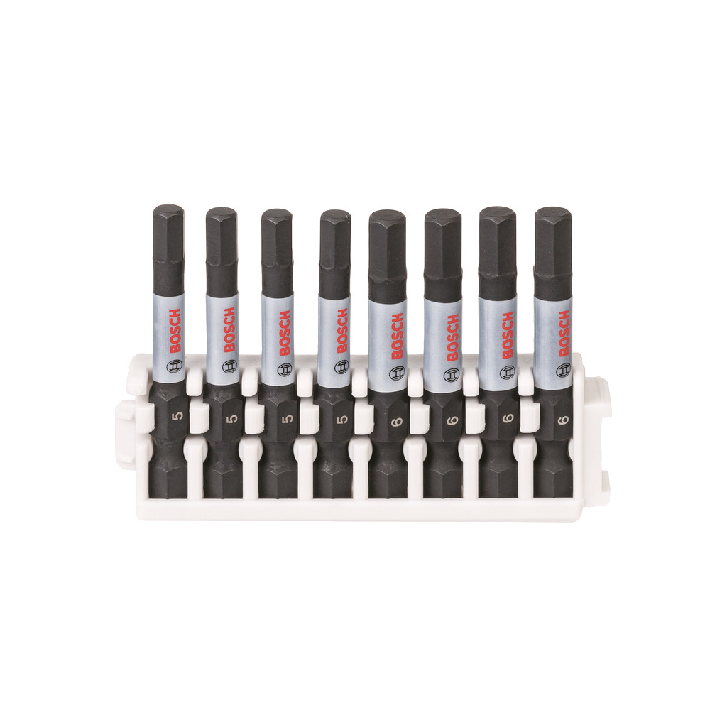 Má 1/4-palcovú šesťhrannú stopku na použitie so štandardnými akumulátorovými vŕtačkami a rázovými uťahovačmi s 1/4-palcovým držiakom SYSTÉM BOSCH PICK AND CLICK Je súčasťou systému Bosch Pick and Click, ktorý umožňuje individuálne zostaviteľné súpravy príslušenstva, vďaka čomu vznikajú kolekcie bitov prispôsobené potrebám. Drážky na zacvaknutie zaisťujú jednotlivo zakúpené balenia bitov, čo umožňuje vytvorenie kolekcie prispôsobenej potrebám a jednoduchú výmenu starých balení.