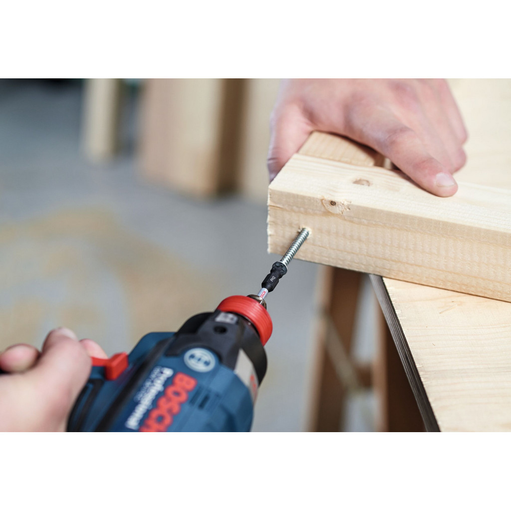 Má 1/4-palcovú šesťhrannú stopku na použitie so štandardnými akumulátorovými vŕtačkami a rázovými uťahovačmi s 1/4-palcovým držiakom SYSTÉM BOSCH PICK AND CLICK Je súčasťou systému Bosch Pick and Click, ktorý umožňuje individuálne zostaviteľné súpravy príslušenstva, vďaka čomu vznikajú kolekcie bitov prispôsobené potrebám. Drážky na zacvaknutie zaisťujú jednotlivo zakúpené balenia bitov, čo umožňuje vytvorenie kolekcie prispôsobenej potrebám a jednoduchú výmenu starých balení.