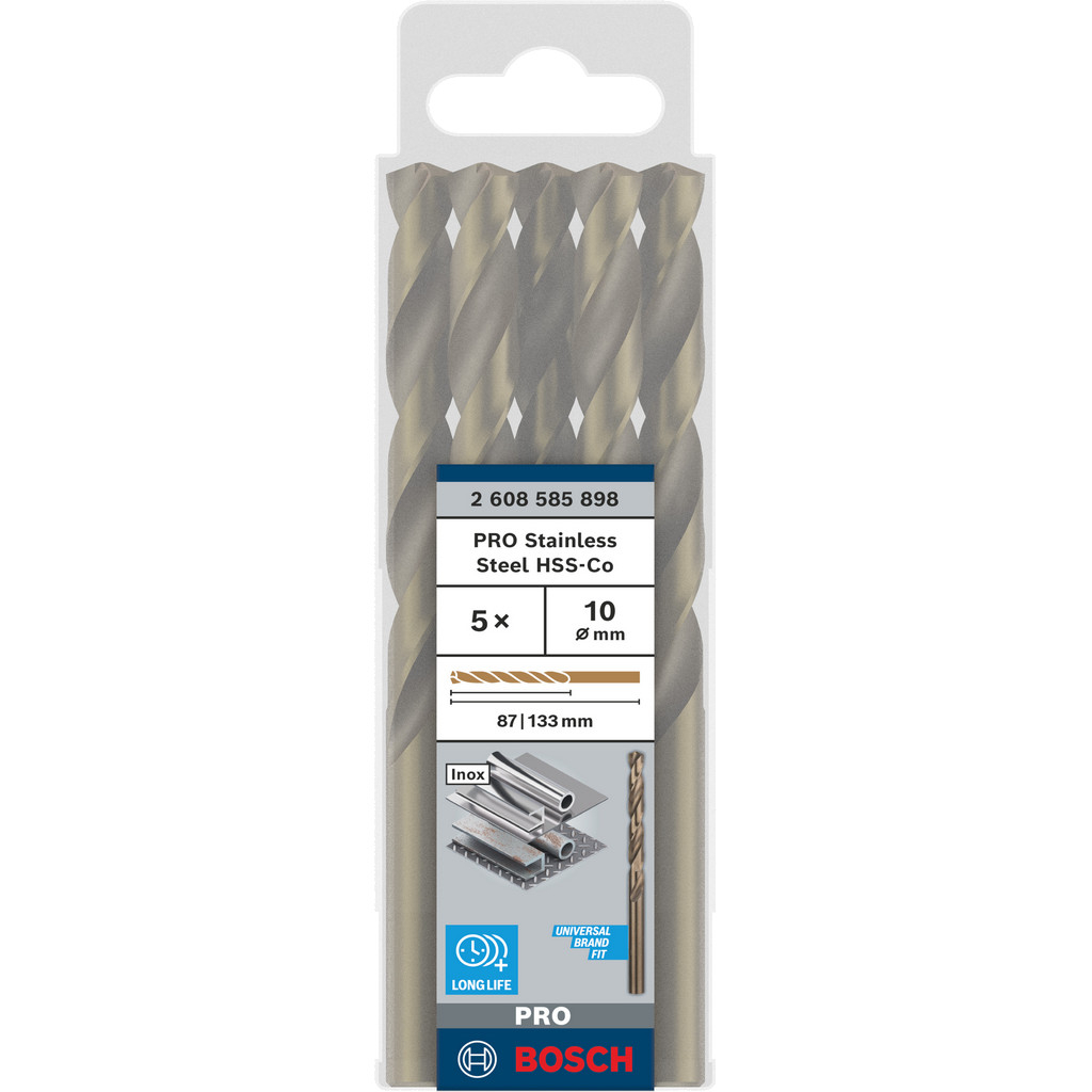 Bosch Špirálový vrták do kovu PRO Stainless Steel HSS-Co, 10 × 87 × 133 mm, 5 ks + DARČEK Delta Plus Zátky do uší 1 pár CONIC001