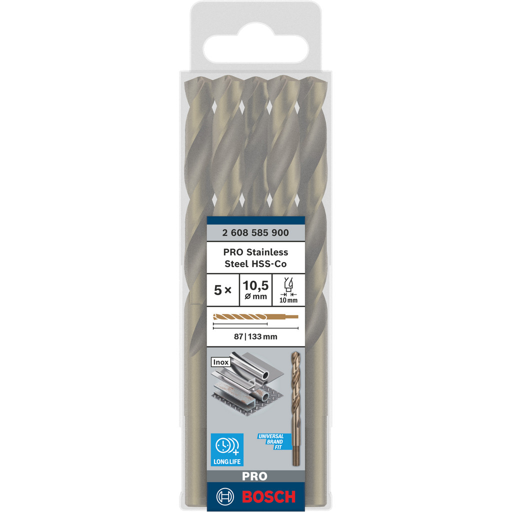 Bosch Špirálový vrták do kovu PRO Stainless Steel HSS-Co, 10,5 × 87 × 133 mm, 5 ks + DARČEK Delta Plus Zátky do uší 1 pár CONIC001