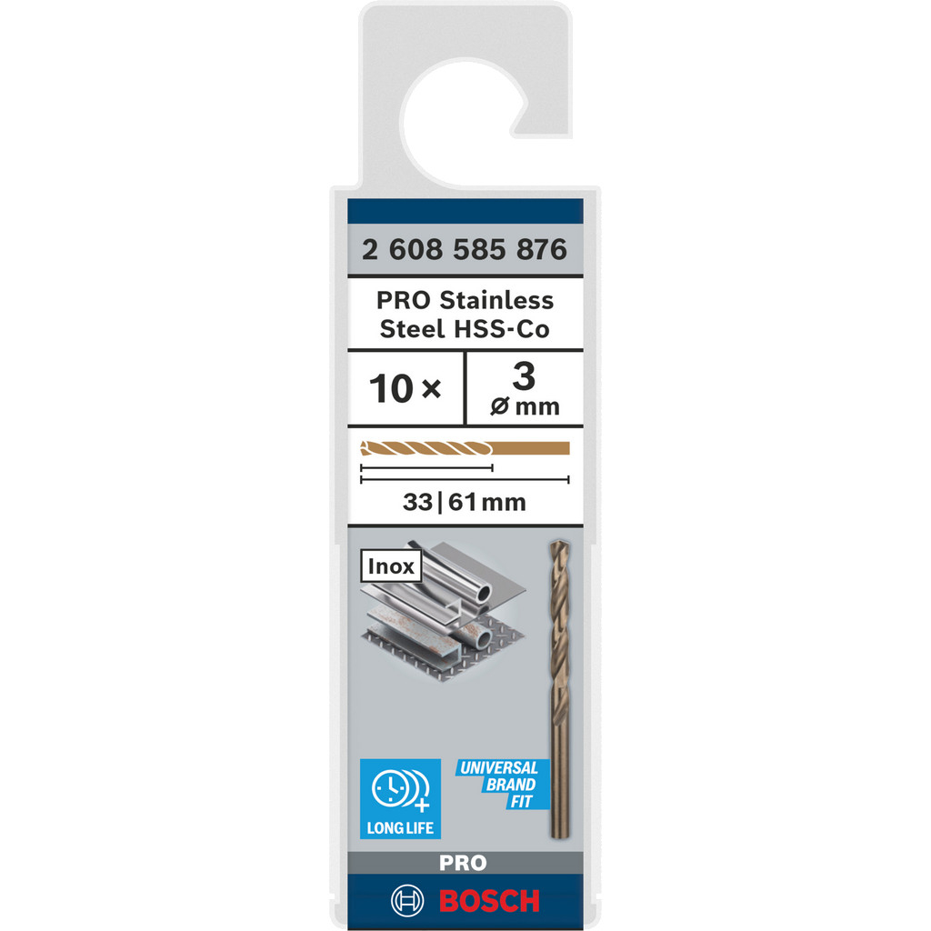 Bosch Špirálový vrták do kovu PRO Stainless Steel HSS-Co, 3 × 33 × 61 mm, 10 ks + DARČEK Delta Plus Zátky do uší 1 pár CONIC001