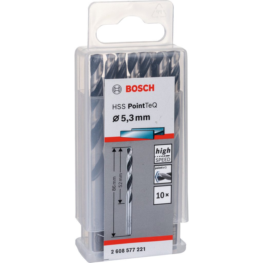 Špirálový vrták Bosch HSS PointTeQ je určený na rýchle, presné a spoľahlivé vŕtanie do kovu. Inovatívny hrot PointTeQ umožňuje jednoduché navŕtanie bez skĺznutia a zbytočného tlaku. Vyššia rýchlosť vŕtania znamená menej tepla a dlhšiu životnosť vrtáka. Ostrý a odolný hrot zabezpečuje nepretržitý výkon aj pri intenzívnom používaní. Elastické telo znižuje riziko prasknutia, brunírovaná drážka zaisťuje efektívny odvod triesok. Norma DIN 338, typ N, 135° špička. Valcovitá stopka pre jednoduché upnutie do bežných trojčeľusťových skľučovadiel.