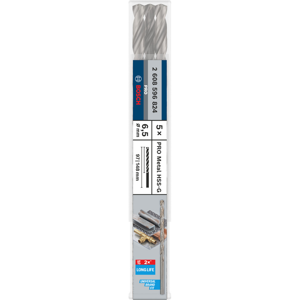 Bosch Špirálový vrták PRO Metal HSS-G dlhý, 6,5 × 97 × 148 mm, 5 ks + DARČEK Delta Plus Zátky do uší 1 pár CONIC001