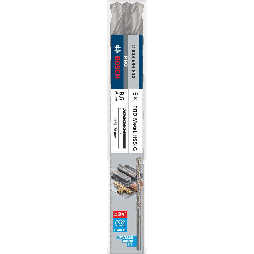 Bosch Špirálový vrták PRO Metal HSS-G dlhý, 9,5 × 115 × 175 mm, 5 ks + DARČEK Delta Plus Zátky do uší 1 pár CONIC001