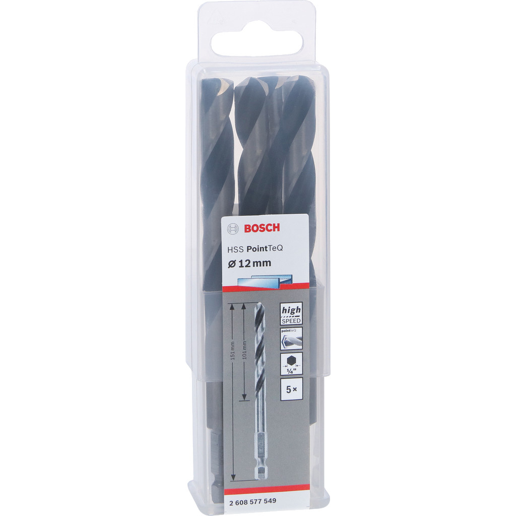 Špirálový vrták Bosch HSS PointTeQ so šesťhrannou stopkou je navrhnutý na rýchle a efektívne vŕtanie do kovu a je vhodný na použitie s vŕtačkami, skrutkovačmi aj príklepovými vŕtačkami či rázovými uťahovačmi. Vysoká rýchlosť vŕtania znižuje tvorbu tepla a opotrebovanie vrtáka, pričom špička Bosch PointTeQ zabezpečuje trvalú ostrosť a dlhú životnosť nástroja. Samostrediaca špička zabraňuje vychyľovaniu vrtáka a umožňuje okamžité a presné navŕtanie bez predvŕtania, zatiaľ čo brunírovaná drážka podporuje rýchly a plynulý odvod triesok. Šesťhranná stopka zaručuje pevné uchytenie vrtáka, spevňuje jeho telo a výrazne znižuje riziko zlomenia pri práci. Krížový výbrus špičky umožňuje aktívne rezanie a dokonalé centrovanie, typ N s uhlom skrutkovnice a 135° uhlom špičky spĺňa normu DIN 338. Vďaka šesťhrannej stopke je zabezpečený maximálny prenos krútiaceho momentu v trojčeľusťových skľučovadlách aj vo vnútornom šesťhrannom upínaní náradia s rozmerom ¼".