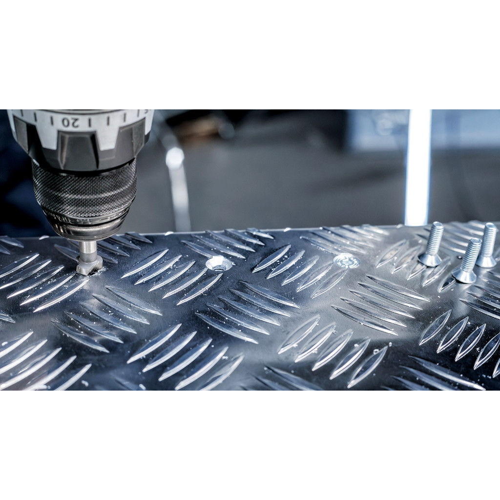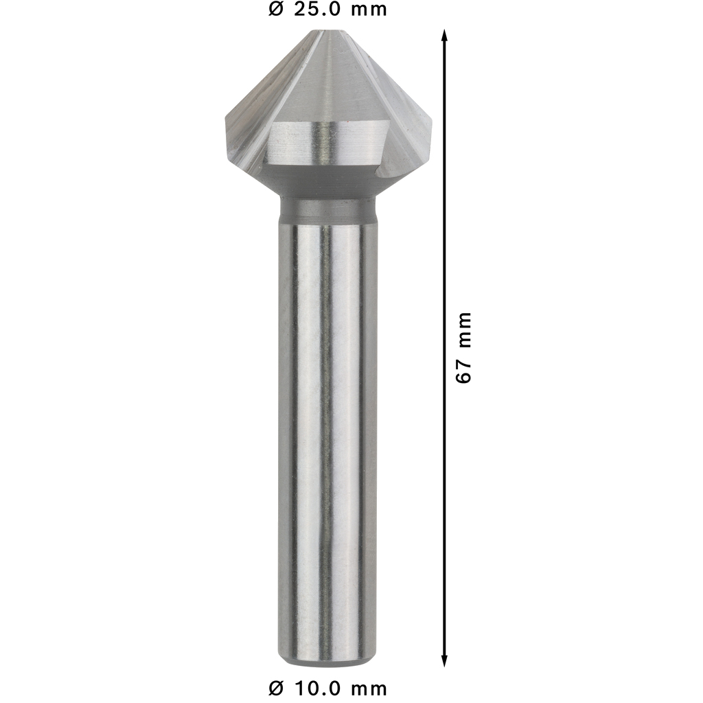 Záhlbník Bosch je vyrobený z rýchloreznej ocele (HSS), ktorá zabezpečuje vysokú pevnosť a odolnosť voči teplu. Tri pravouhlé rezné hrany s uhlom 90° zaručujú stabilné vedenie a presný výsledok. Valcovitá stopka je kompatibilná s trojčeľusťovými skľučovadlami, čo umožňuje jednoduché a bezpečné upnutie.