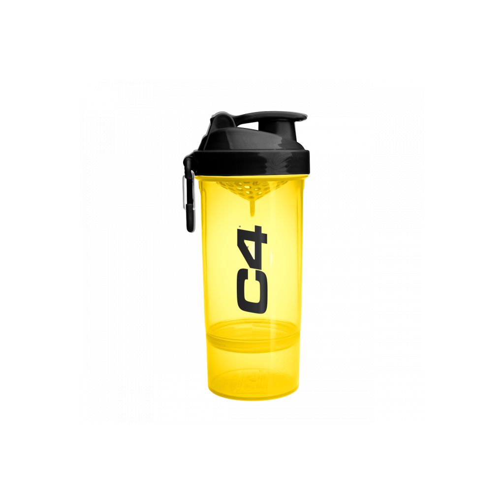 C4 Energy Smart Shaker má dva diely a je ako stvorený na rozmiešanie vašich obľúbených suplementov. Je vyrobený z kvalitného plastu, ktorý neobsahuje BPA ani DEHP. Pritom vyniká praktickým a pevným uzáverom, a tak sa nemusíte báť prenášať ho, aj keď bude naplnený. Okrem toho je vybavený plastovou mriežkou, s ktorou bez problémov rozmiešate váš obľúbený proteín, gainer alebo BCAA úplne do hladka. Tie môžete mať uložené priamo v šejkri, pretože jeho spodnú časť tvorí oddeliteľná nádoba, ideálna na prenášanie práškových suplementov. Pokojne ju však použite aj na uskladnenie vitamínov a iných doplnkov výživy v kapsulách alebo tabletách. Šejker pritom môžete využiť aj ako štýlovú fľašu na vodu.