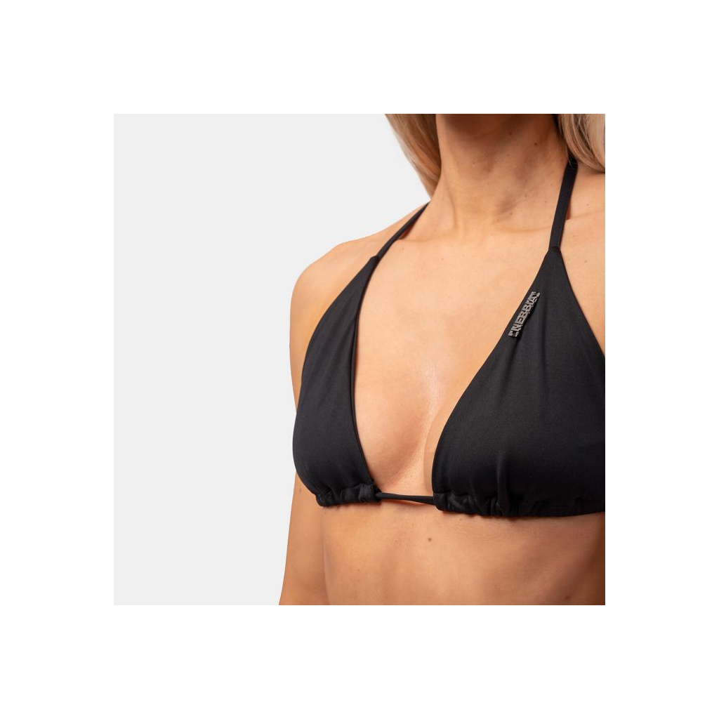 Classic Triangle Bikini vrchný diel bez kostíc a výstuže je vyrobený z kvalitného a nepriesvitného materiálu, ktorý je na tele veľmi príjemný. Za krkom a na chrbte má zaväzovanie na šnúrku, vďaka čomu sa perfektne prispôsobí vašim krivkám. Okrem praktickej stránky rýchloschnúceho materiálu oceníte aj ich decentný design. Čierna farba je elegantná a lichotí každej žene. Nechýba im samozrejme ani vkusný detail v podobe kovového loga NEBBIA. To dá vášmu okoliu zreteľne najavo, že patríte medzi milovníkov aktívneho životného štýlu. Môžete si byť istí, že v týchto plavkách zaujmete svoje okolie nielen na pláži, ale aj pri bazéne.