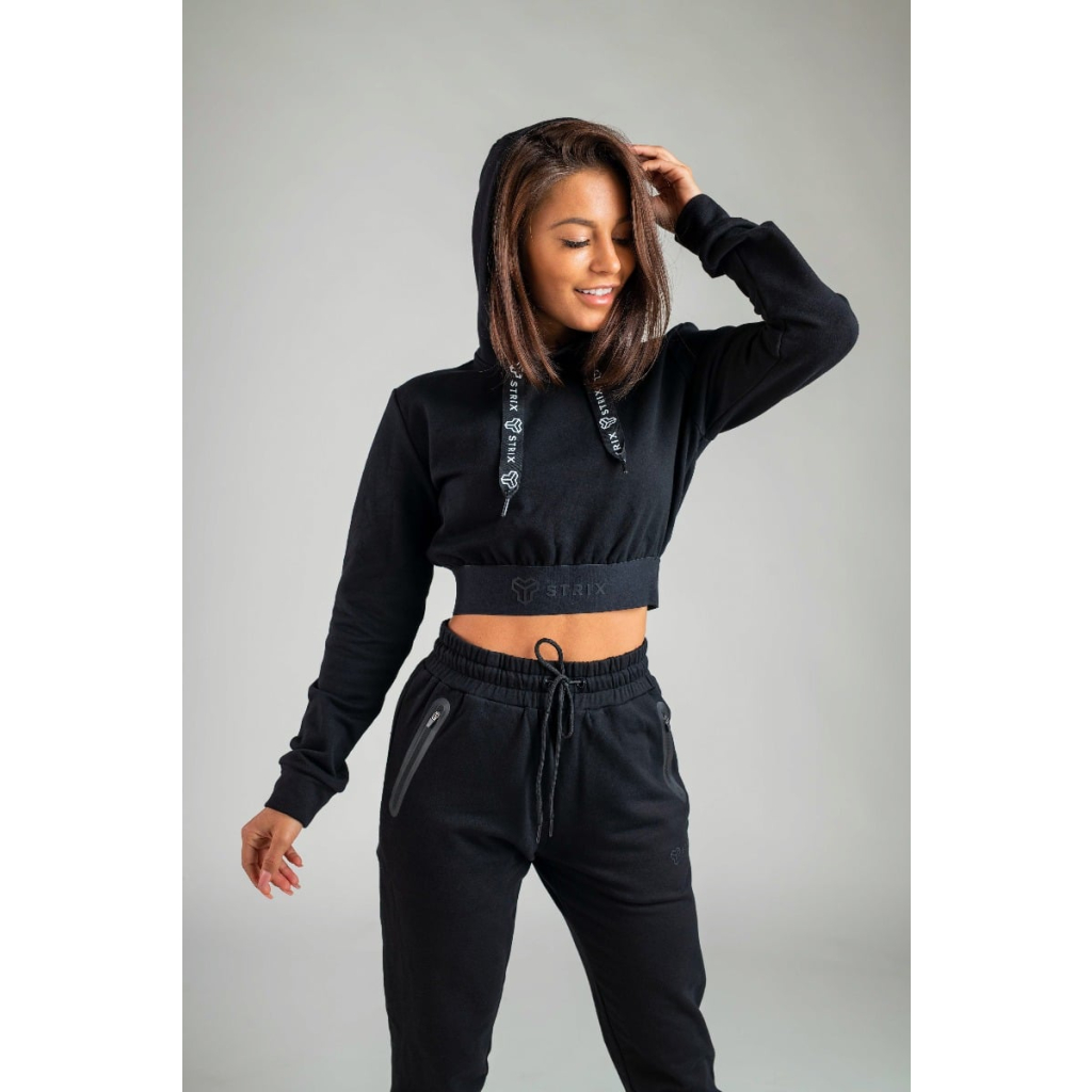 Dámska mikina Essential Cropped Hoodie Black - STRIX