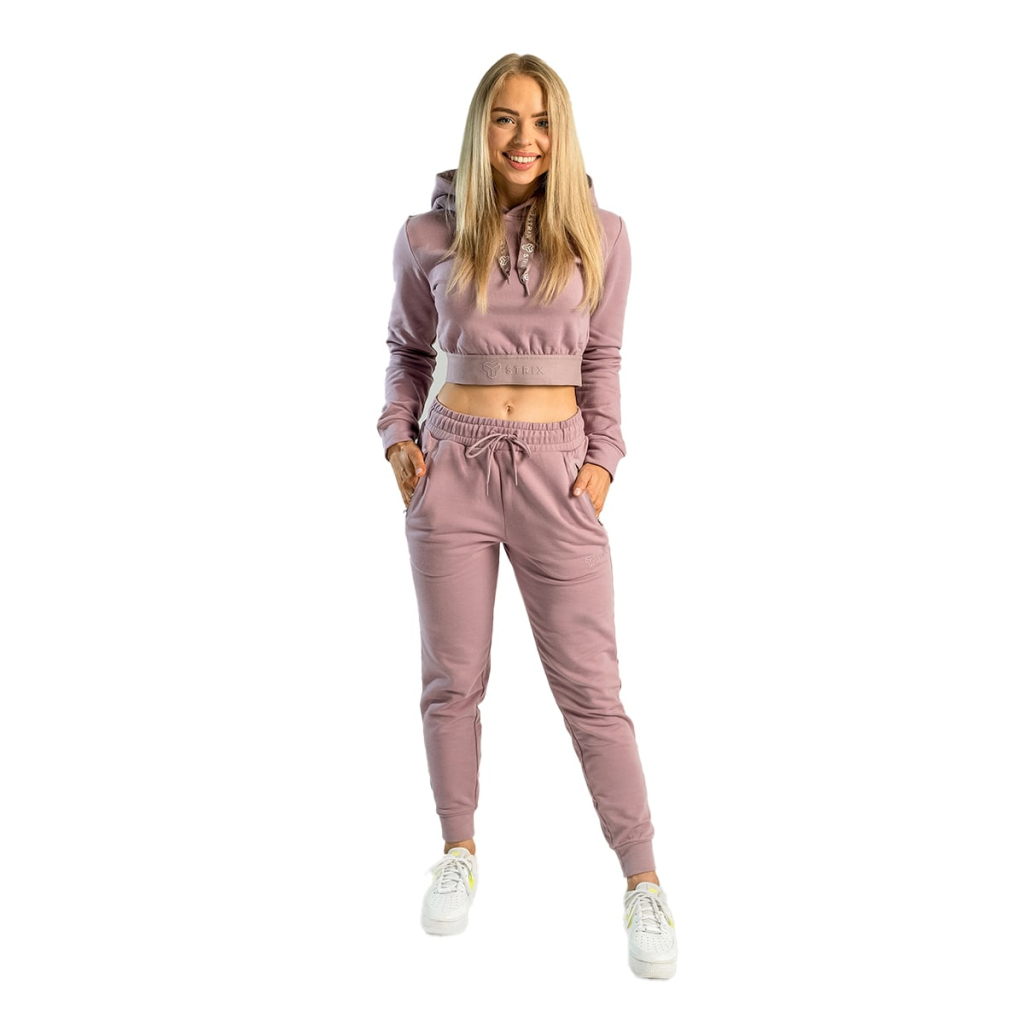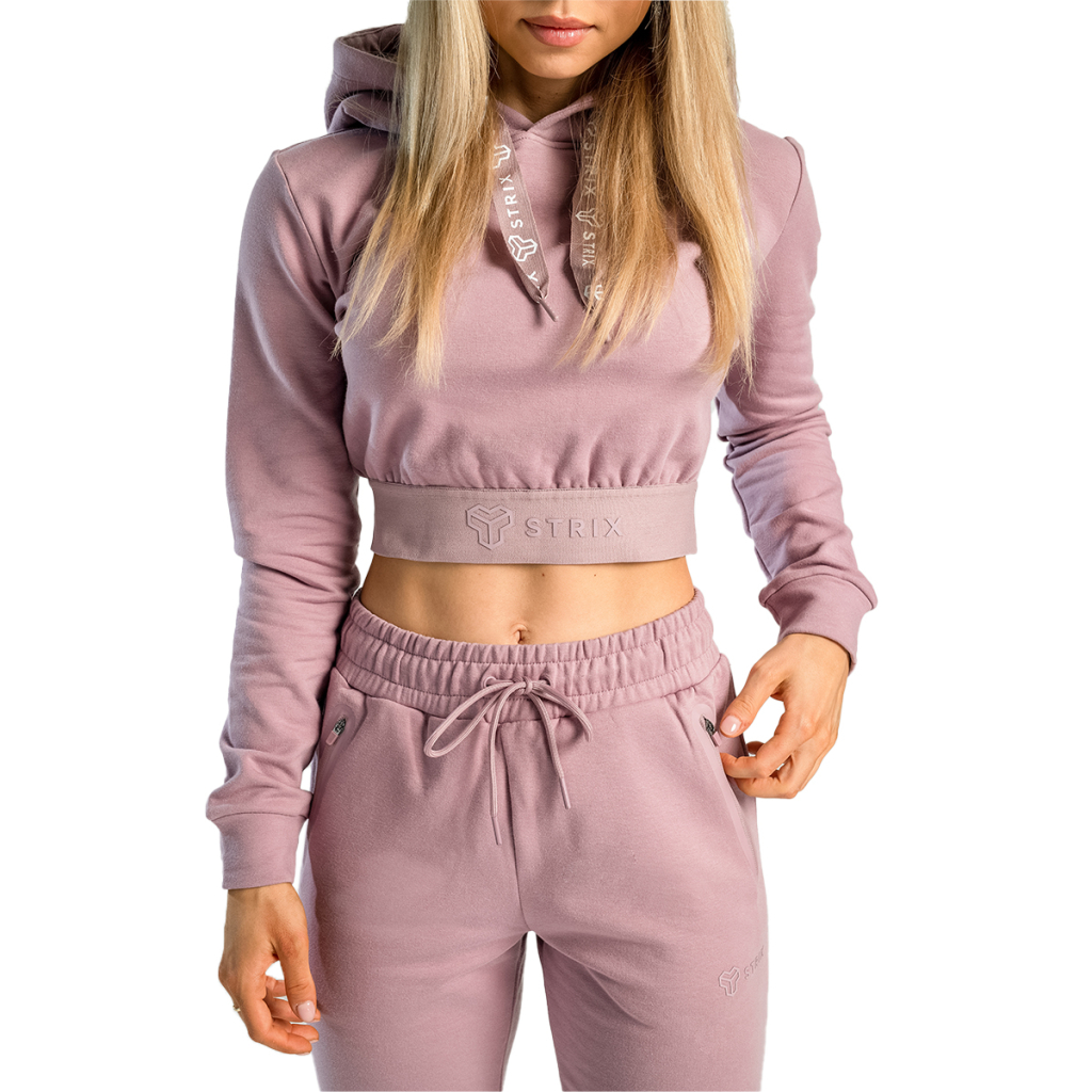 Dámska mikina Essential Cropped Hoodie Mauve - STRIXModelka meria 162 cm a má oblečenú veľkosť S.