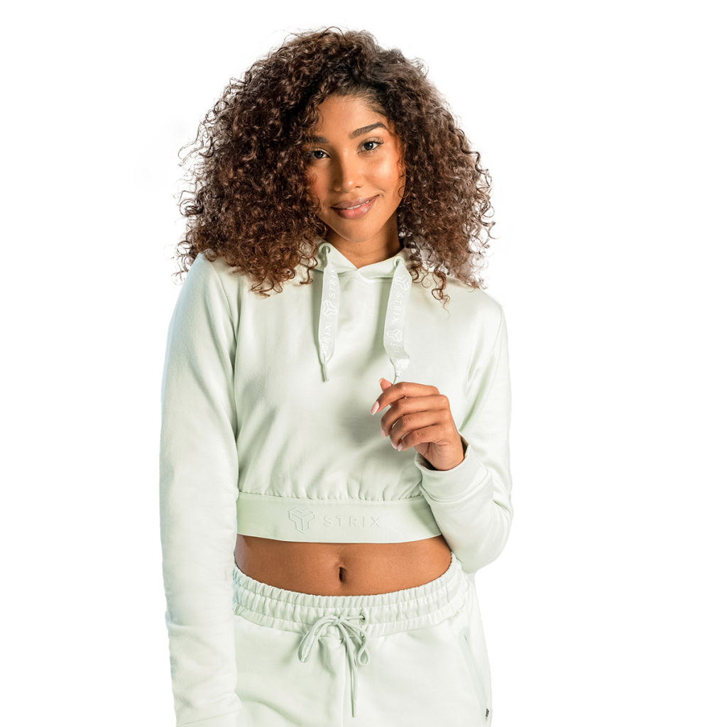 Táto mikina má moderný skrátený strih a minimalistický dizajn, ktorý podčiarkujú decentné nápisy a logo STRIX. Skvelo sa hodí k legínam alebo teplákom s vysokým pásom. Kratší strih mikiny zvýrazní váš úzky pás a budete sa v nej cítiť sebavedome na tréningu v posilňovni, ale aj vo voľnom čase.