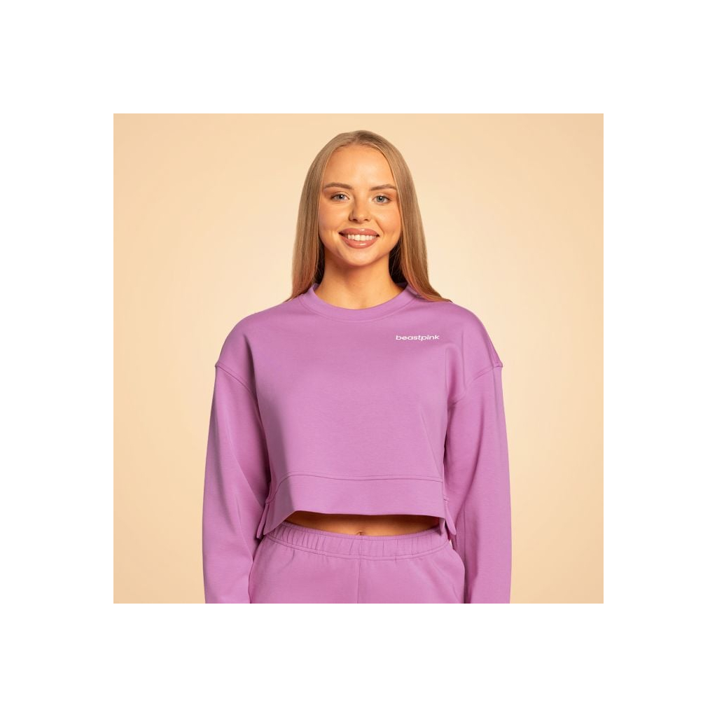 Táto mikina má modernú (cropped) skrátenú dĺžku, ktorá krásne zvýrazní ženskú siluetu. Oblieka sa cez hlavu a je bez kapucne a vreciek, čo prispieva k jej minimalistickému a elegantnému dizajnu. Na hrudi ju zdobí iba decentné logo BeastPink, ktoré mikine dodáva jedinečný prvok. Ľahko ju zladíte so šortkami či nohavicami z kolekcie Grace, a vytvoríte tak perfektný outfit. Skvele však bude vyzerať aj s teplákmi či rifľami z vášho existujúceho šatníka.
