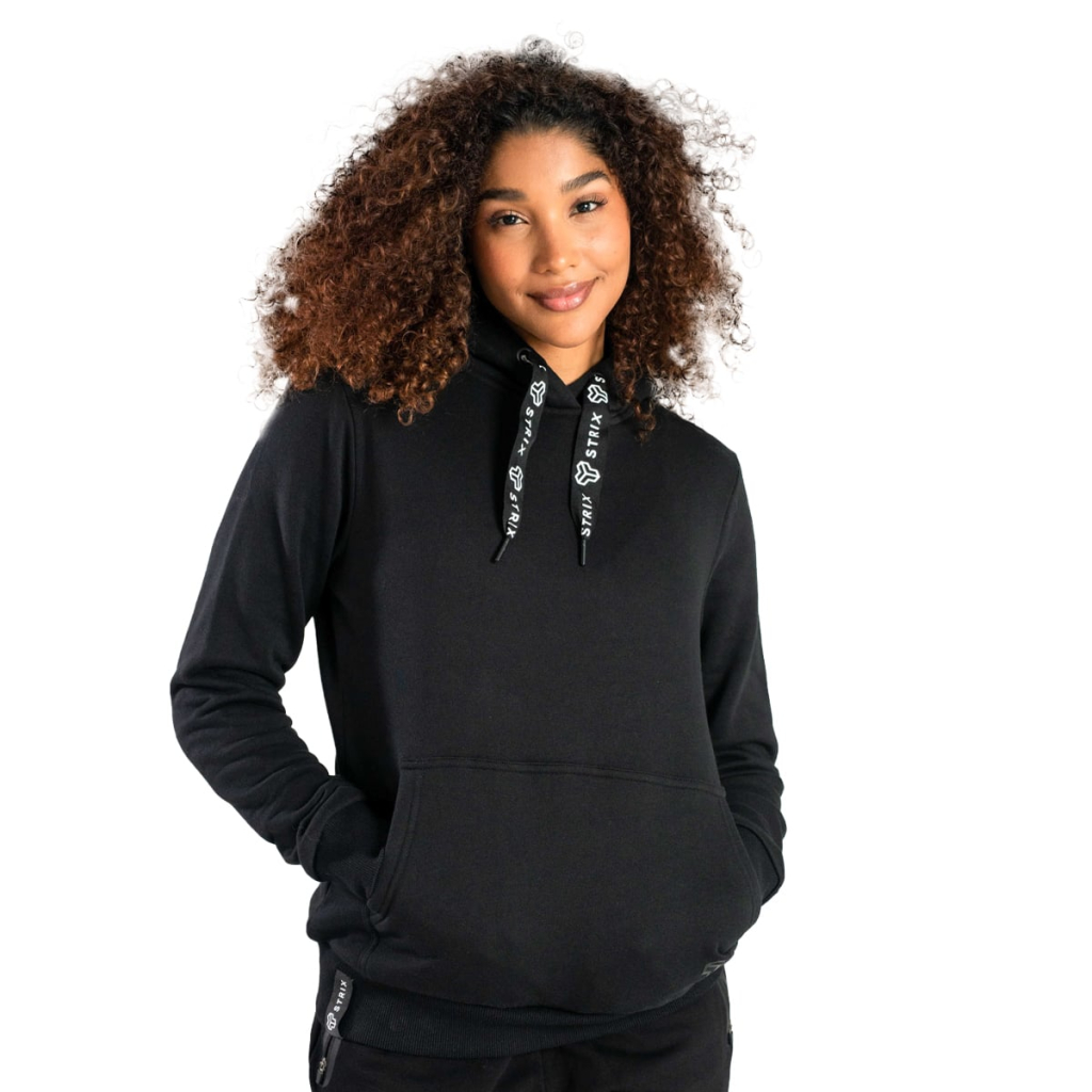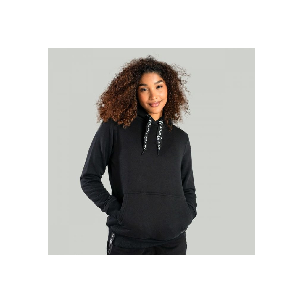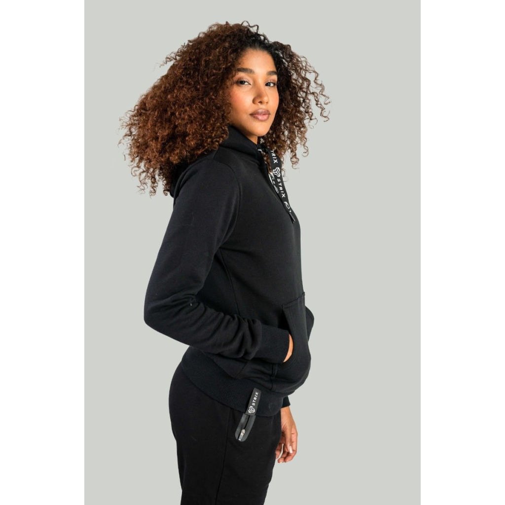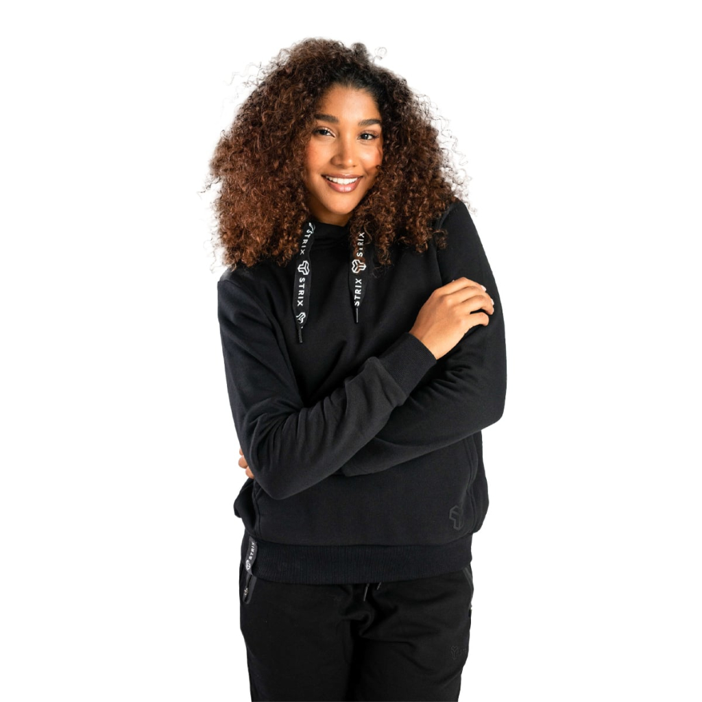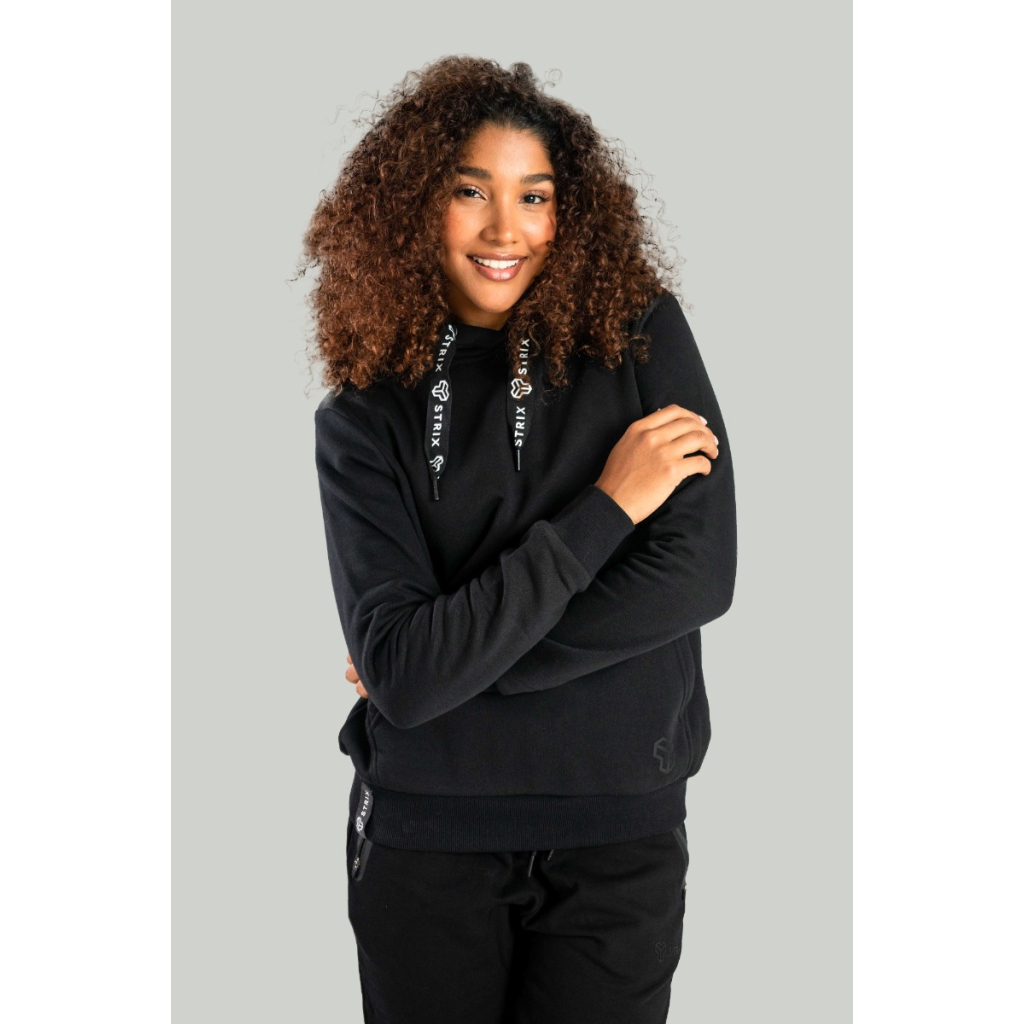 Dámska mikina Hoodie Aster Black - STRIXModelka meria 173 cm a má oblečenú veľkosť S.
