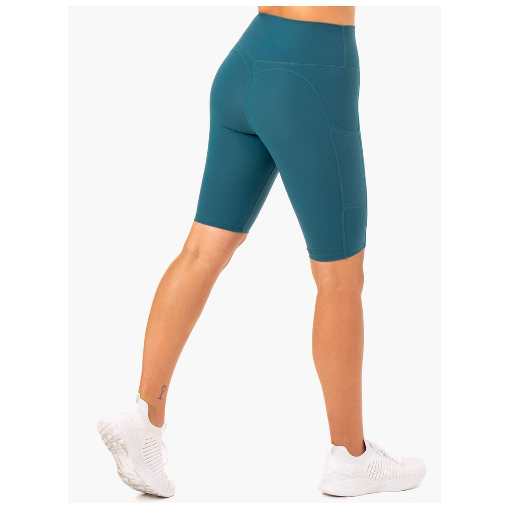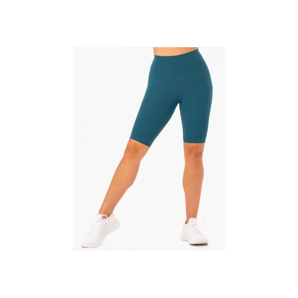 Dámske biker šortky s vreckami a vysokým pásom Reset Teal - Ryderwear