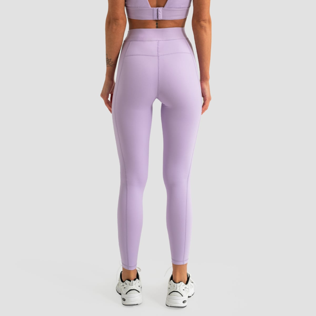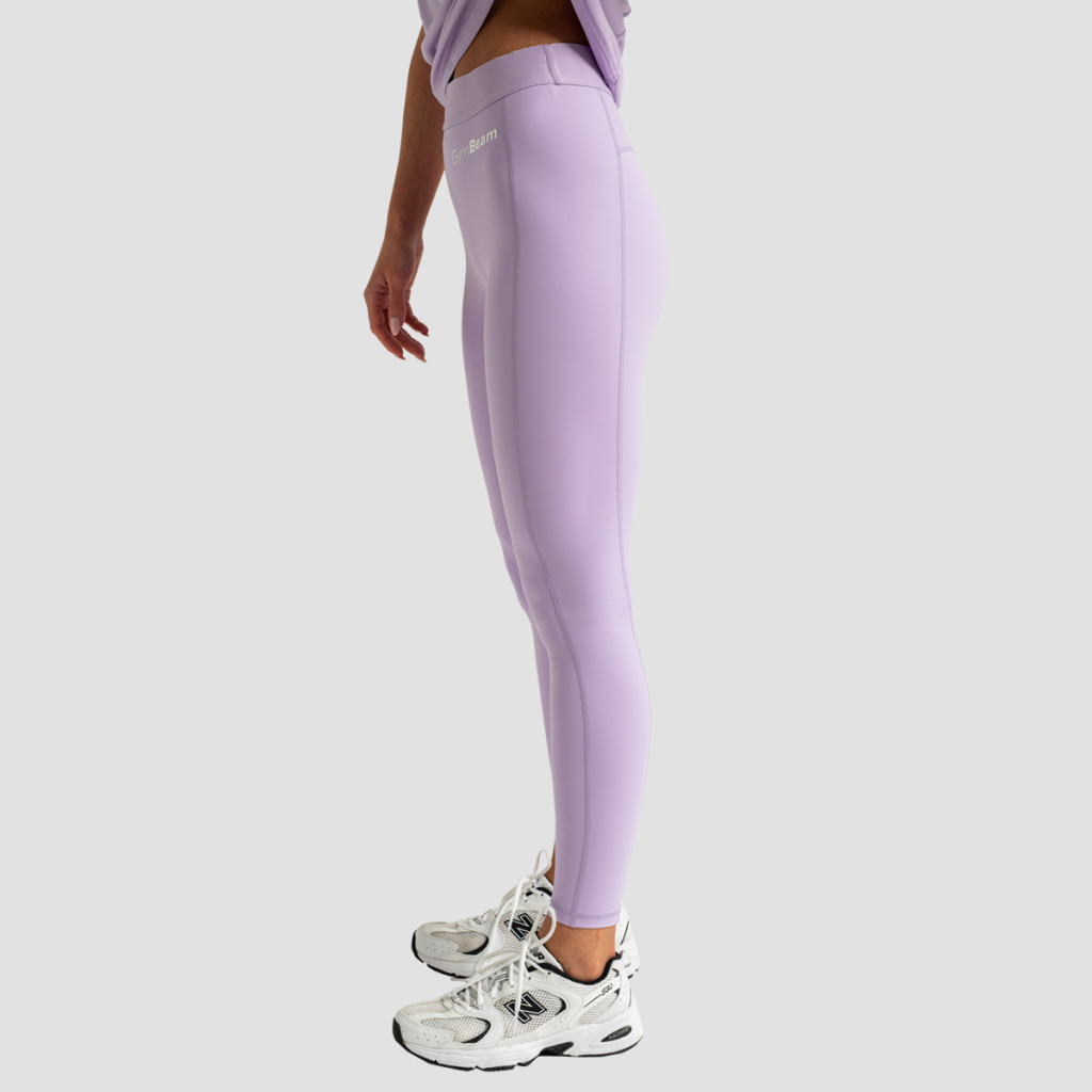 Dámske legíny Limitless Levanduľa - GymBeam Modelka meria 165 cm a má na sebe veľkosť XS.