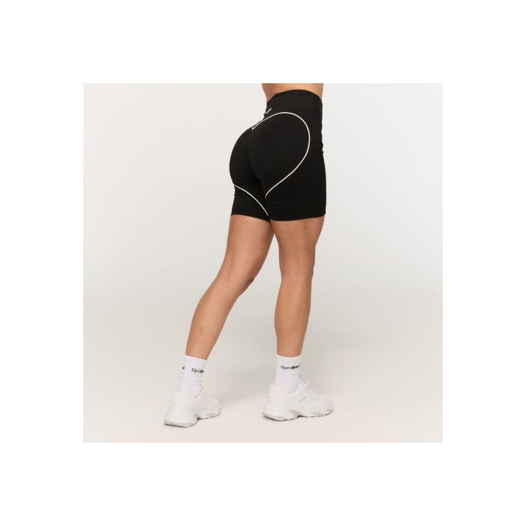 Tieto športové kraťasy ponúkajú priliehavý slim fit strih strednej dĺžky, ktorý perfektne obopne postavu. Vysoký pás s elastickou gumou zaručuje, že všetko zostane na svojom mieste, a je navrhnutý bez predného švu pre maximálny komfort. Dominantným prvkom je veľké kontrastné lemovanie v tvare srdca na zadnej strane tvorené tenkými bielymi pruhmi pre trendový vzhľad. Tento detail opticky tvaruje pozadie, zvýrazňuje vaše krivky a dokonale podčiarkne ženský pôvab a príťažlivosť.