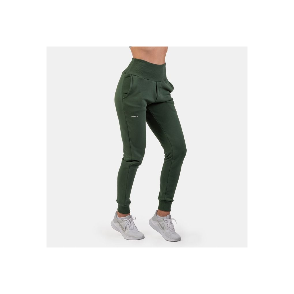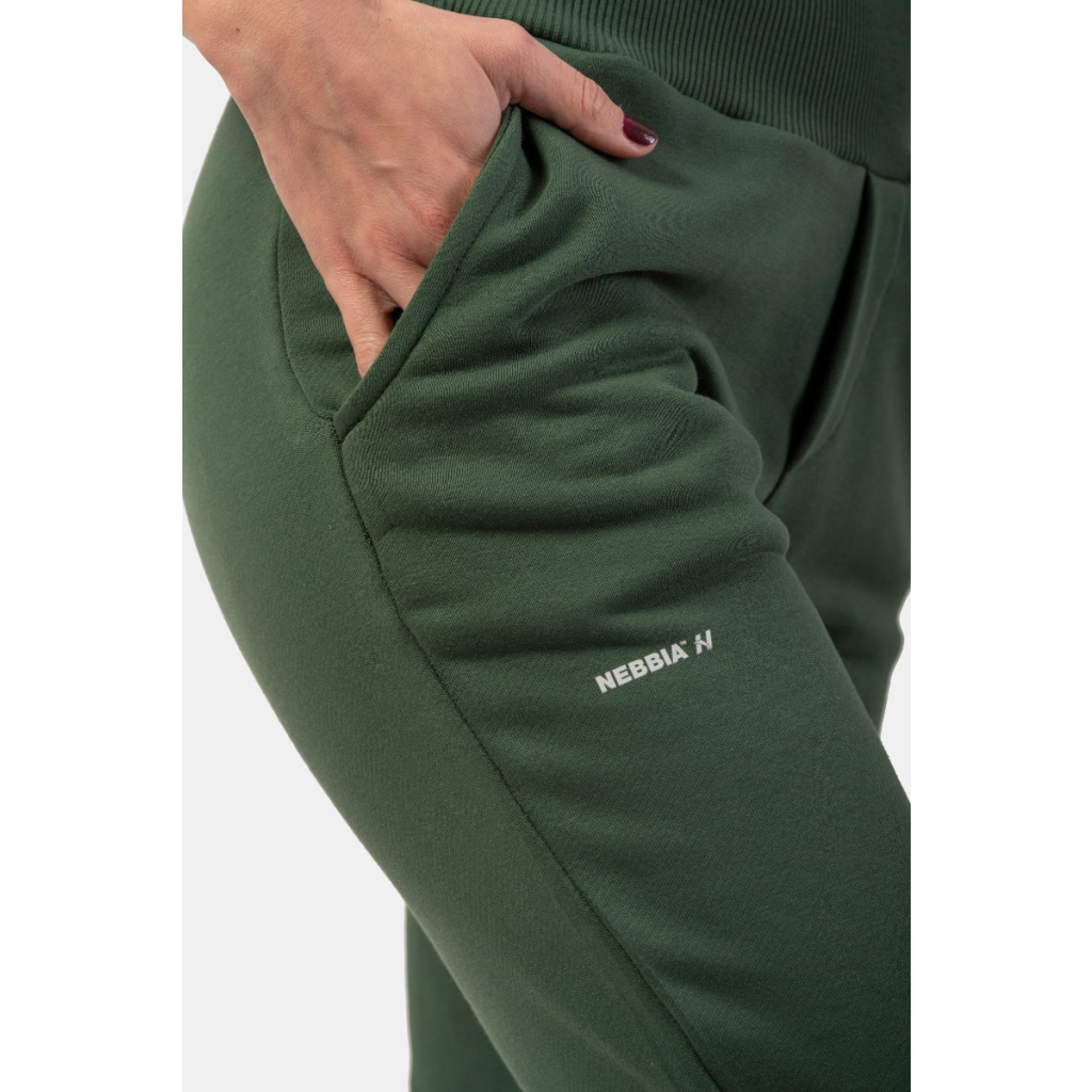 Dámske tepláky High Waist Loose Fit Dark Green - NEBBIA