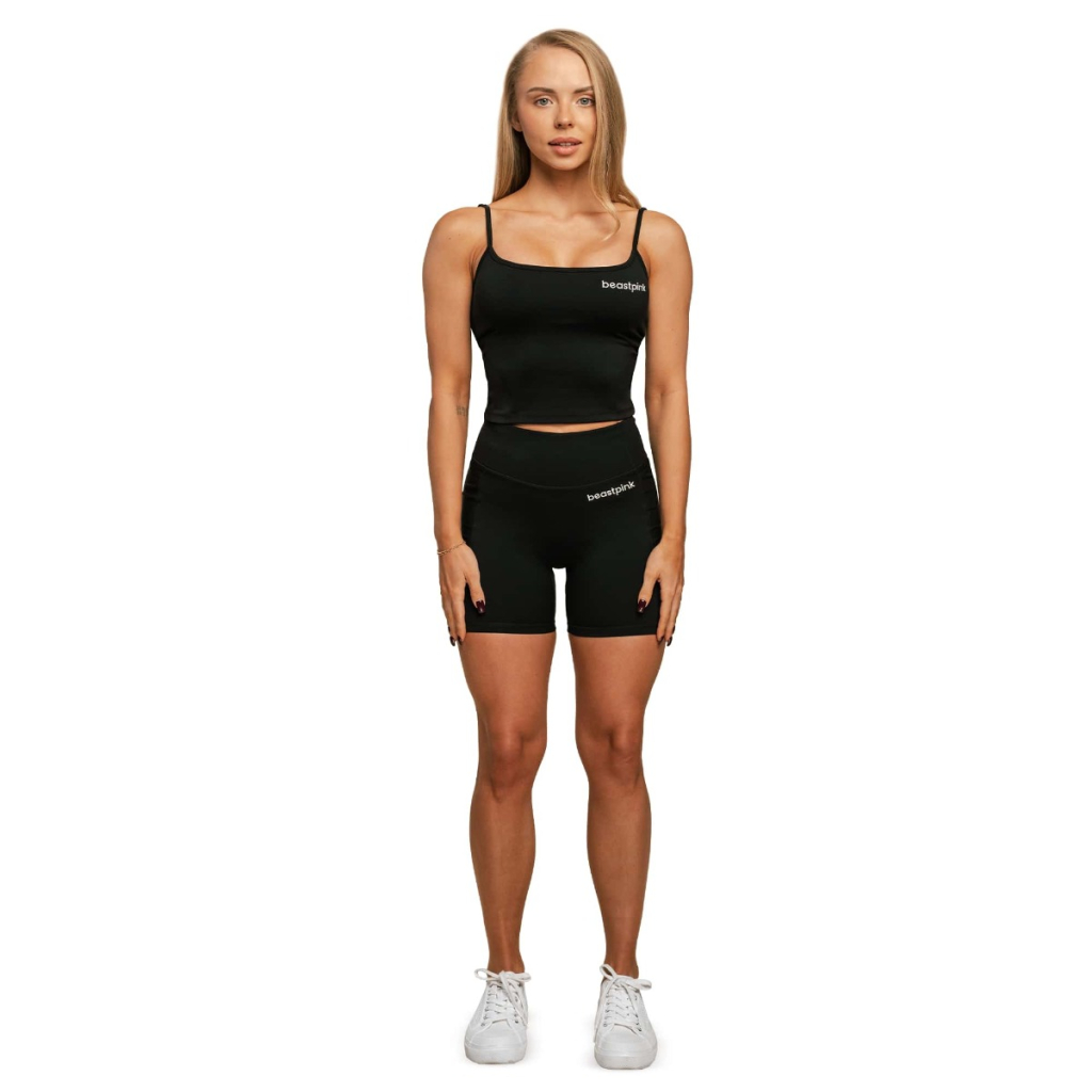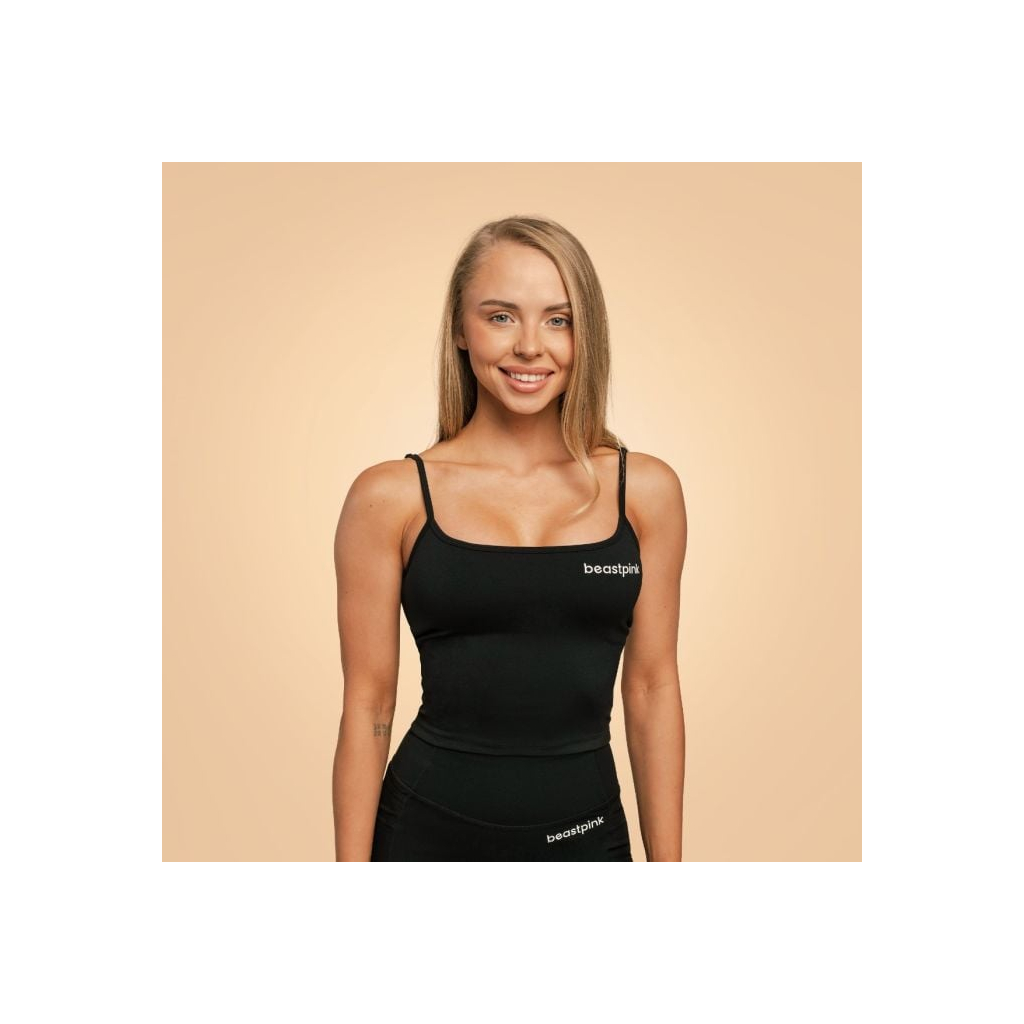 Vďaka klasickému dizajnu s tenkými ramienkami a kratšiemu strihu skvele doplní legíny alebo kraťasy s vysokým pásom. Pokojne ho však môžete nosiť aj s riflami a vytvoriť tak štýlový mestský outfit. Jeho minimalistický vzhľad dopĺňa len jemné logo beastpink na prednej strane, vďaka čomu sa veľmi ľahko kombinuje a necháva vyniknúť vašu jedinečnosť.