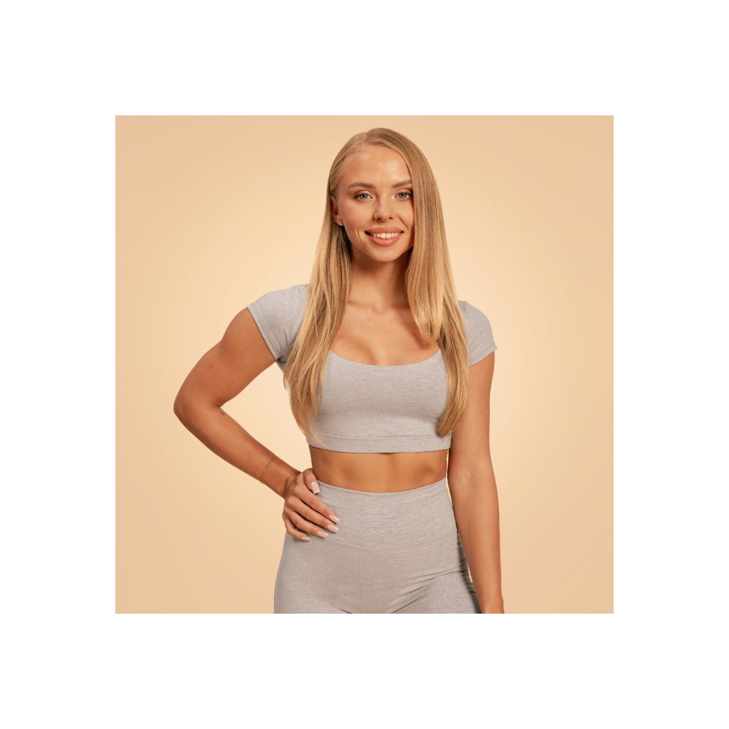 Dámské triko Cropped Sense Grey - BeastPinkModelka meria 162 cm a má na sebe veľkosť S.