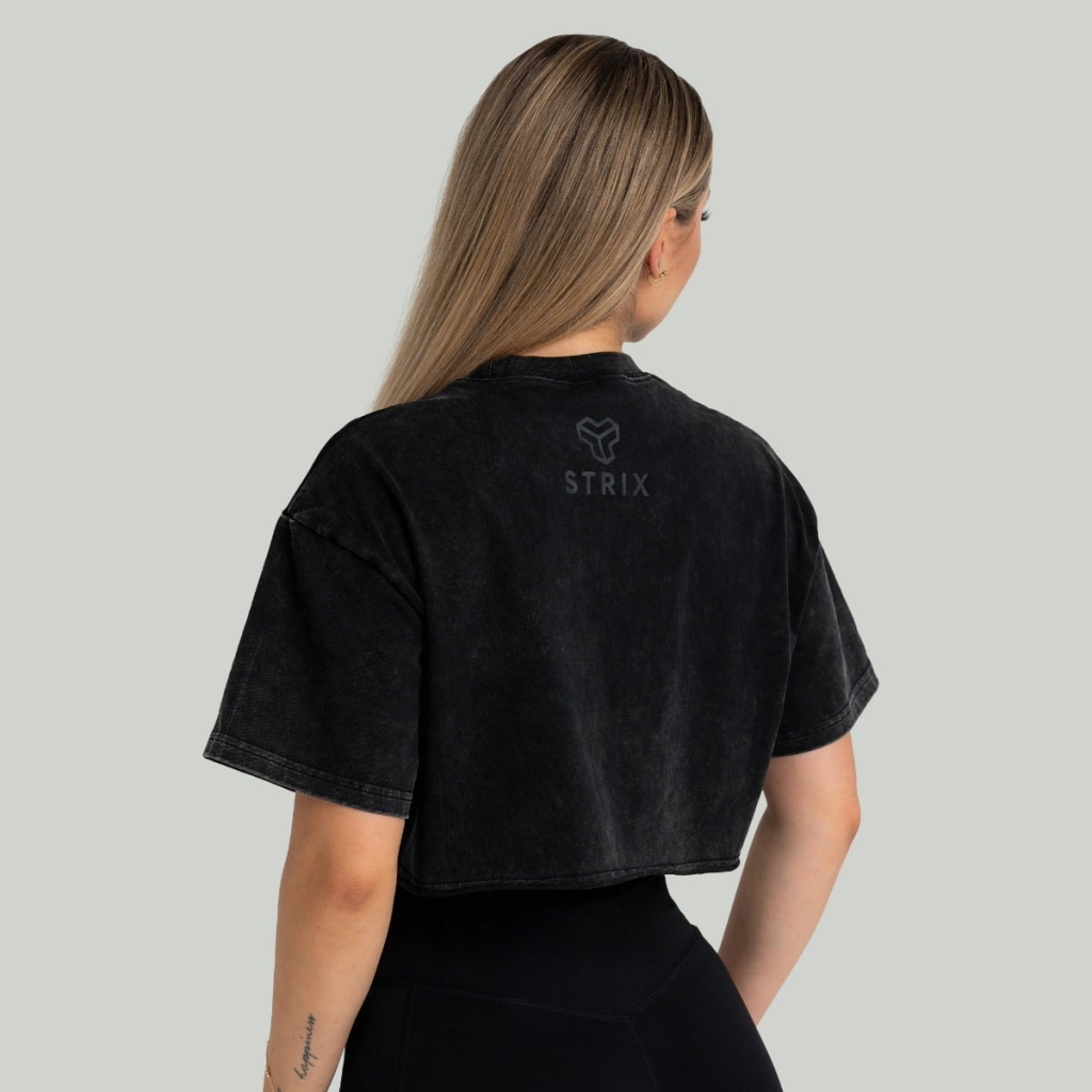 Dámske tričko CropTop Washed Black - STRIX