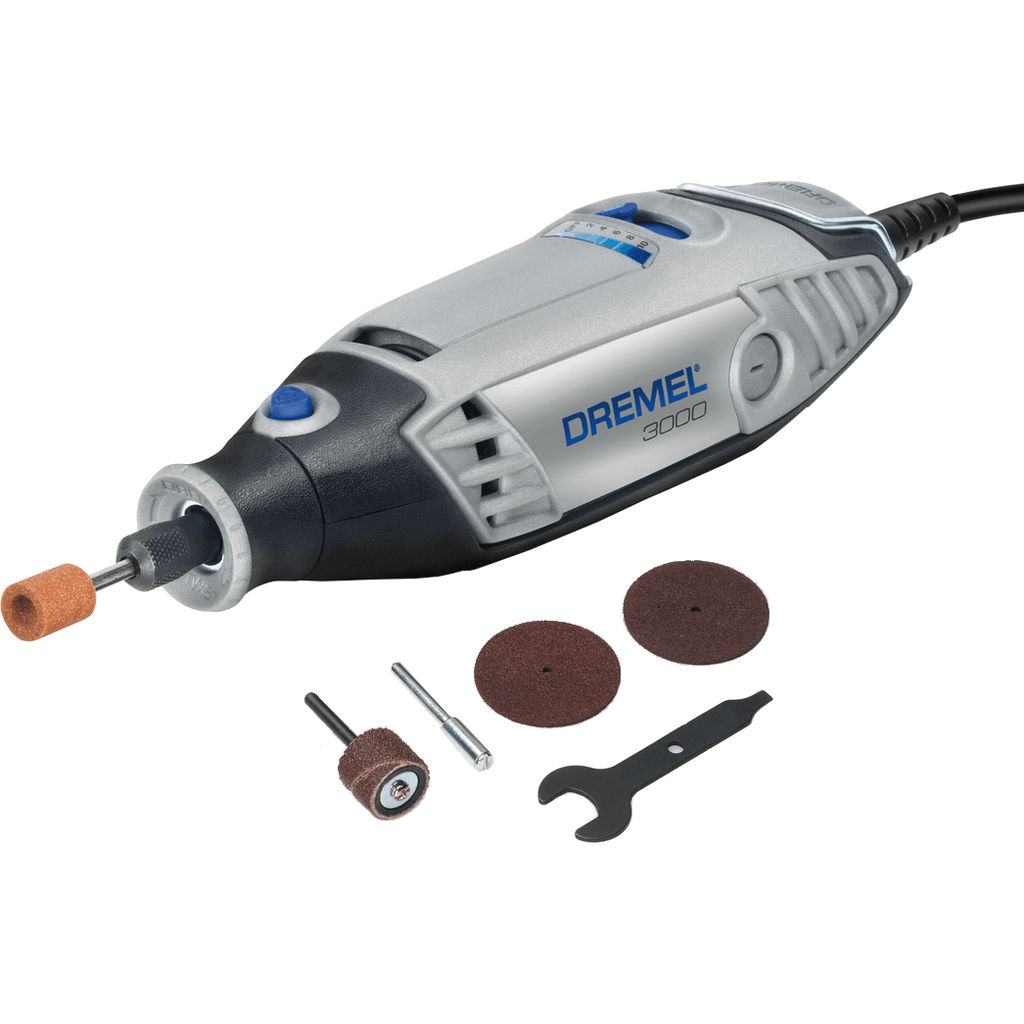 5 kusov vysokokvalitného príslušenstva Dremel: 1x Brúsny kameň z oxidu hliníka 9,5 mm (932) 2x Rezný kotúč 32 mm (540) 1x Brúsny pás a vreteno 13 mm, zrnitosť 60 (407) 1x Upínací tŕň (402)