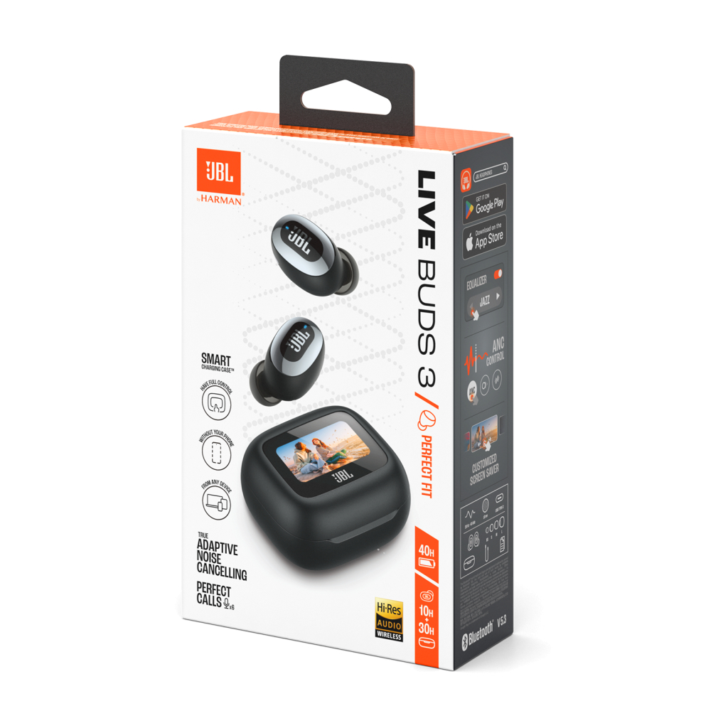 Každý aspekt vašich slúchadiel JBL Live Buds 3 si môžete prispôsobiť pomocou 1,45 palcového dotykového displeja na vašom puzdre Smart Charging Case™. Displej vám poskytuje plnú kontrolu nad zvukom na akomkoľvek zariadení – notebooku, televízore, smartfóne alebo tablete – bez toho, aby ste museli pristupovať k aplikácii JBL na vašom smartfóne.