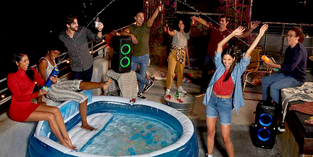 Ak hľadáte spoločníka na večierok, ktorý sa nezľakne kvapiek vody je pre vás bezdrôtový Bluetooth reproduktor JBL PartyBox 310 skvelá voľba. Vďaka odolnosti IPX4 proti striekajúcej vode môžete počúvať hudbu napríklad aj pri bazéne či na dovolenke pri mori. Špičkový zvuk zaručuje JBL Pro Sound, ktorý kombinuje úrovne hĺbok a vytvára tak pulzujúcu atmosféru umocnenú skvelými svetelnými efektmi v rytme basov z reproduktora JBL 310 PartyBox.
