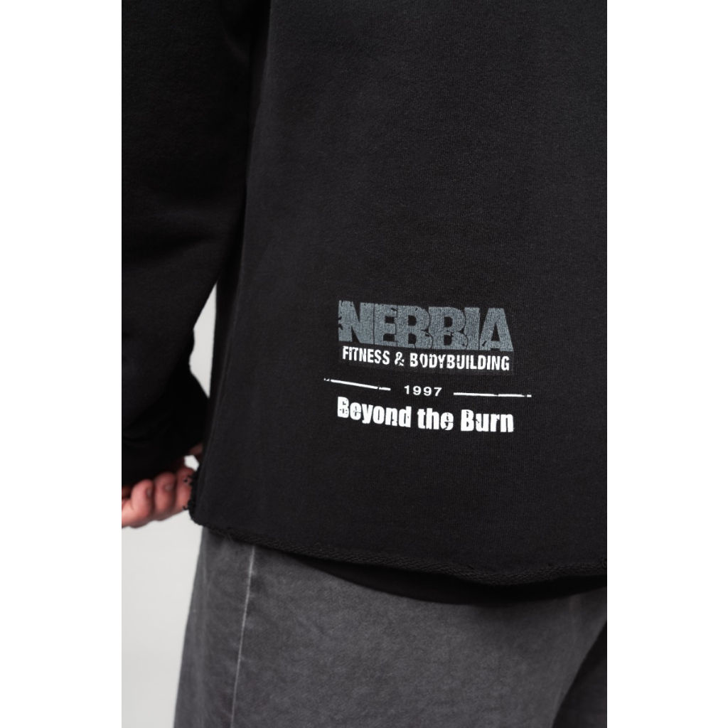 Táto pánska mikina zaujme aj jedinečnými "raw" nedokončenými lemami, ktoré sú inšpirované 90. rokmi. Zdobí ju veľký nápis NEBBIA na rukáve a motivačná potlač "Beyond the Burn" na chrbte, ktorá symbolizuje odhodlanie prekonávať svoje limity. Vďaka pohodlnému materiálu sa stane vaším obľúbeným kúskom na rozcvičku v posilňovni, na prechádzku aj na relaxačné aktivity. Rovnako dobre sa hodí aj ako súčasť štýlového voľnočasového outfitu.