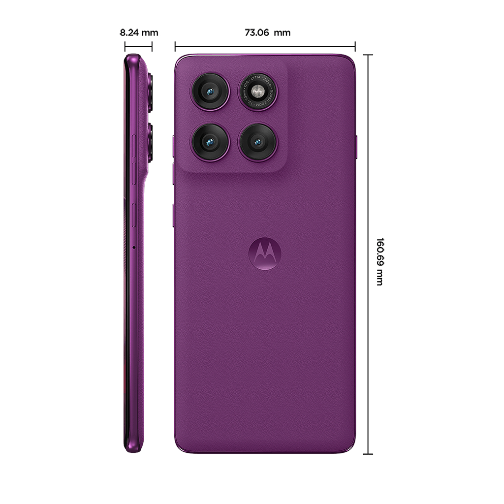 Mobilní telefon disponující 6,67" velkým P-OLED displejem s Super HD rozlišením 2712 × 1220 obrazových bodů a obnovovací frekvencí 120 Hz. Pohání jej osmijádrový procesor MediaTek Dimensity 8350 o taktu až 3,35 GHz, doplněný o 8 GB operační paměti. K uložení dat je připraveno úložiště s kapacitou 256 GB. O plynulé zobrazení se stará grafický akcelerátor Mali-G615 MC6. Telefon podporuje rychlý datový přenos 5G. Samozřejmostí je bezdrátové připojení Wi-Fi a Bluetooth. K zachycení autoportrétů slouží 50Mpx čelní kamera, zadní duální kamera má pak rozlišení 50,0 + 50,0 + 10,0 Mpx. Dlouhá výdrž je zajištěna z 6000 mAh velké baterie s podporou nabíjení TurboPower 90 W. Telefon pohání operační systém Android 15. Disponuje taktéž voděodolností dle IP68/IP69. ZÁKLADNÍ SPECIFIKACE Úhlopříčka: 6,67" Výbava: Wi-Fi, Bluetooth, 5G, 4G LTE, NFC, GPS, A-GPS, Glonass, Galileo, LTEPP, SUPL, Beidou, NavIC, nano SIM slot + eSIM, trojitý zadní fotoaparát, snímač otisku prstů v displeji, odemknutí telefonu pomocí rozpoznávání obličeje, senzor přiblížení, snímač okolního osvětlení, akcelerometr, gyroskop, snímač SAR, ThinkShield, kompas, IP68/IP69, MIL-STD 810H, MediaTek NPU 780, Dolby Atmos Operační systém: Android 15 Frekvence procesoru: až 3,35 GHz Velikost operační paměti: 8 GB Kapacita interní paměti: 256 GB Rozlišení snímače: 50,0 + 50,0 + 10,0 Mpx/ 50,0 Mpx (zadní/ přední) Barva: fialová (PANTONE Sparkling Grape) Hmotnost: 186 gDodatočné parametre