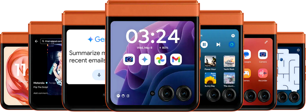 Legendárny skladací telefón prichádza na trh s novým dizajnom a podporou AI. Zoznámte sa s Motorola RAZR 50, ktorá má 6,9” hlavný pOLED displej a 3,63” vonkajší pOLED displej. Procesor MediaTek Dimensity 7300X s 8 GB pamäte RAM zabezpečí plynulý chod zariadenia a ponúka interný ukladací priestor s kapacitou 256 GB. Batéria s kapacitou 4200 mAh má podporou rýchleho nabíjania 30W TurboPower. Či si idete zabehať alebo telefonujete v daždi, stupeň krytia IPX8 (odolnosť voči vode) dôkladne ochráni váš RAZR 50.