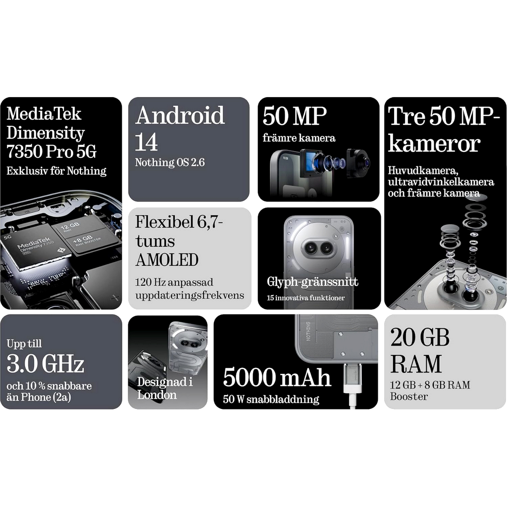 Smartfón Nothing Phone(2a) Plus je presne stvorený pre všetkých používateľov, ktorí chcú po všetkých stránkach skvele vybavené zariadenie za rozumnú cenu. Štýlový smartphone Nothing Phone(2a) Plus opäť ponúkne extravagantný dizajn s čiastočne priesvitným chrbtom. Navyše pridáva výkonnejší čipset, novú 50 Mpxprednú kameru, rýchlejšie nabíjanie a samozrejme 5G alebo prémiový AMOLED displej. Výrobca taktiež avizuje úzke prepojenie s aplikáciou ChatGPT.
