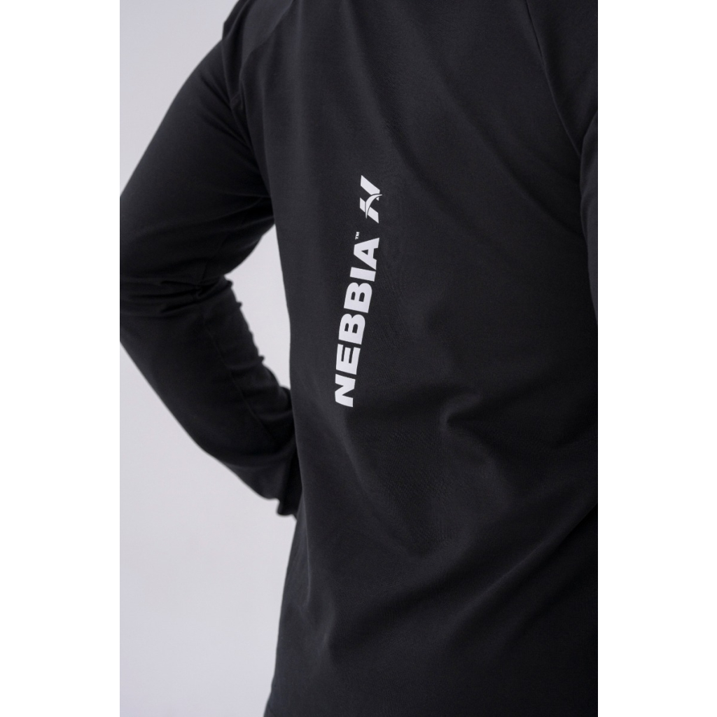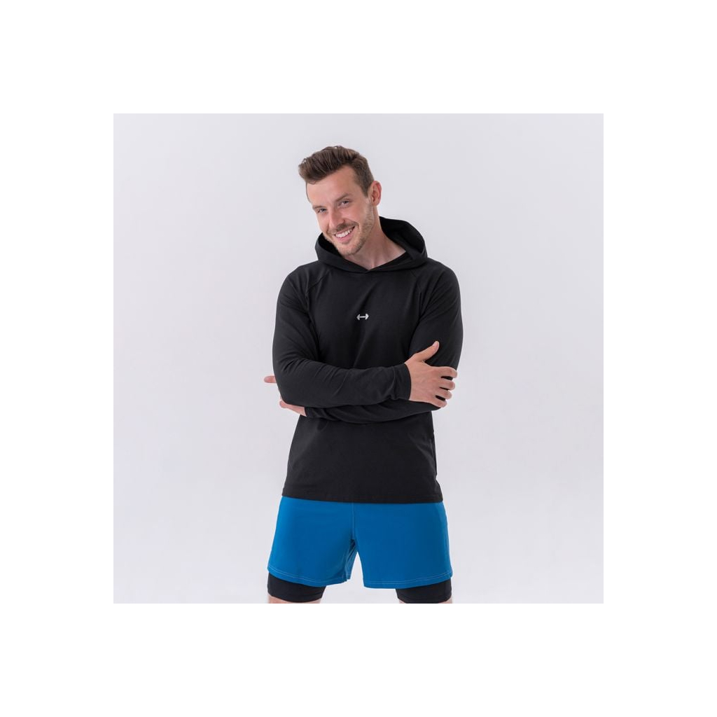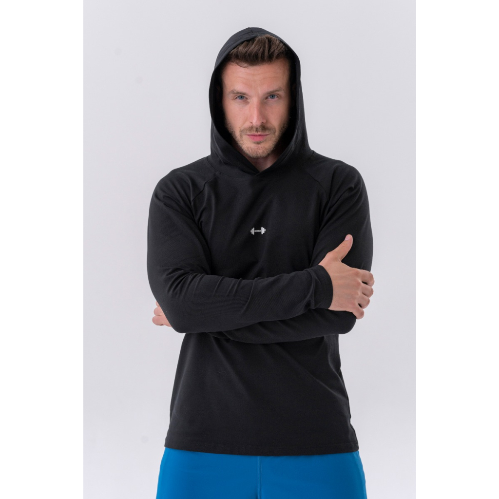 Pánske tričko Long-Sleeve Hoodie Black - NEBBIA
