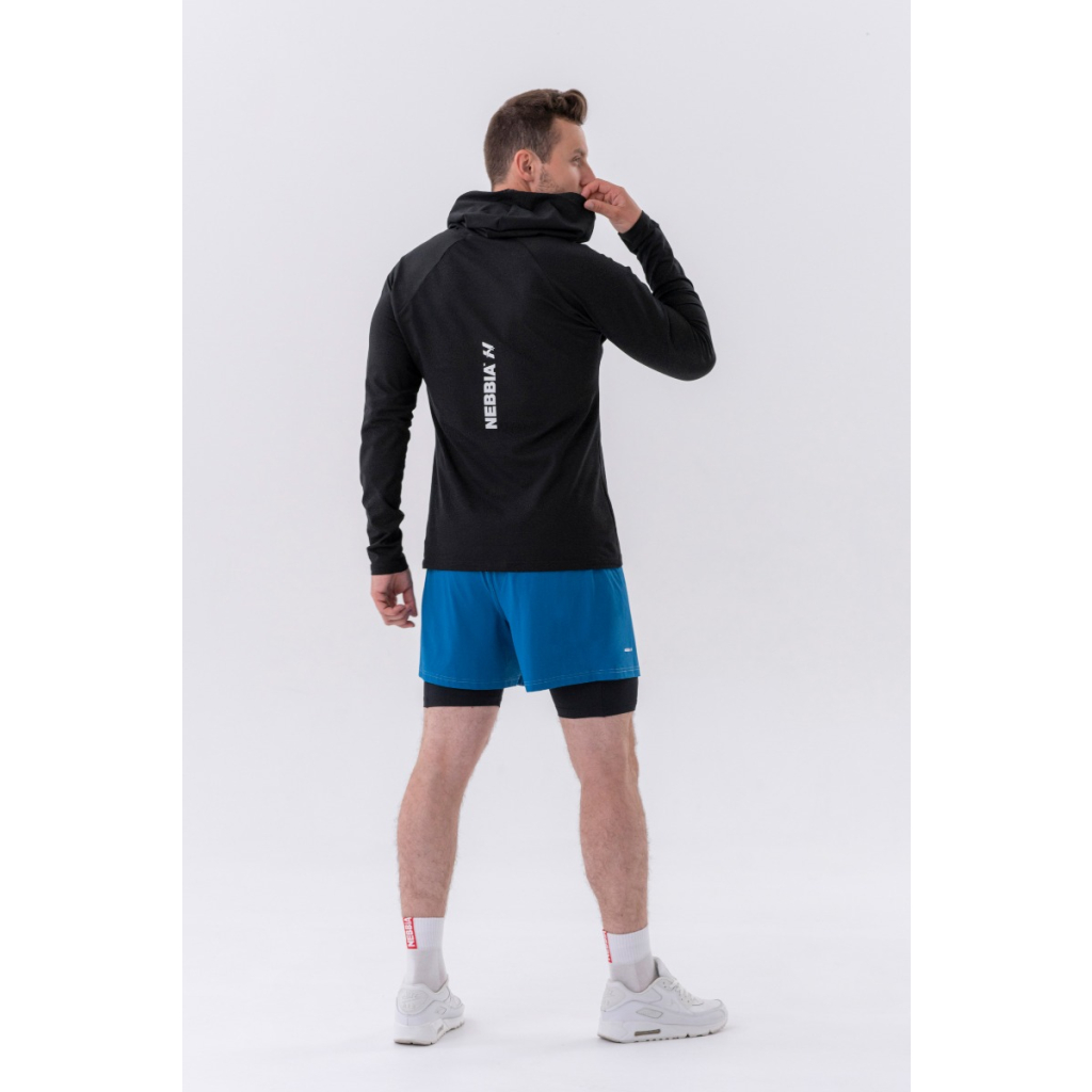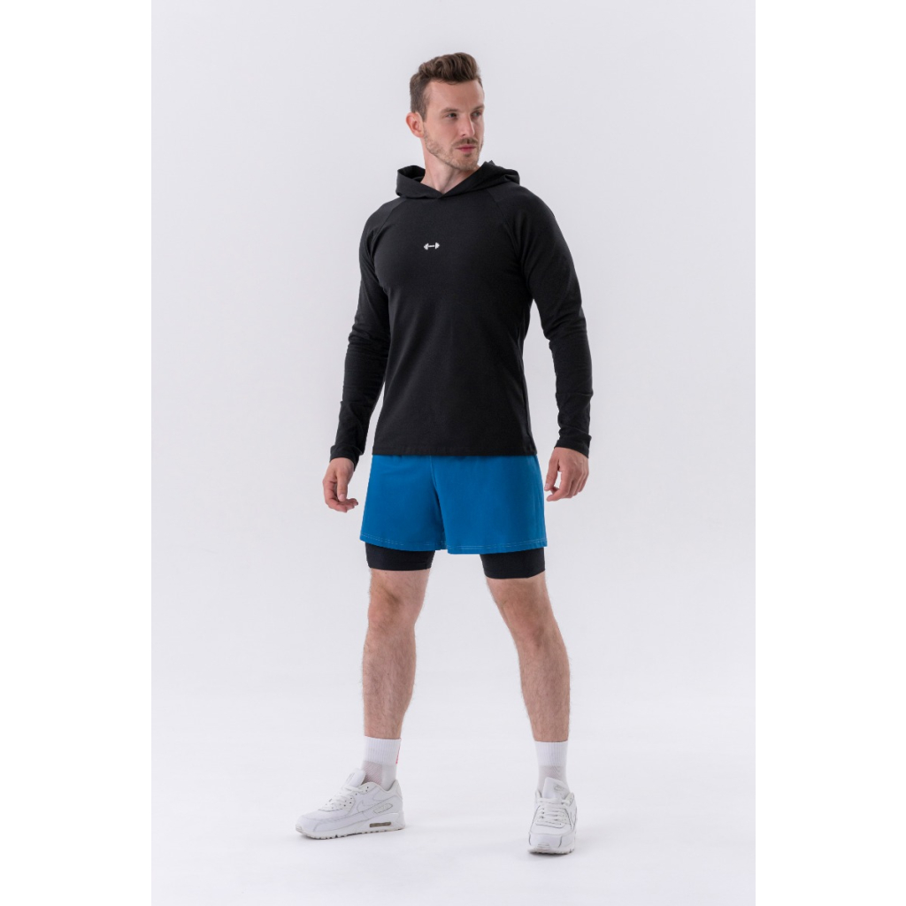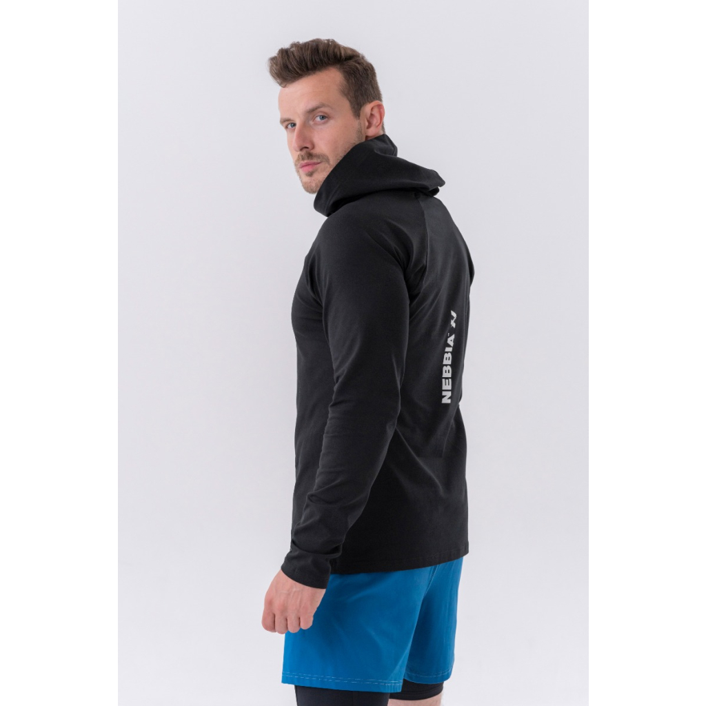 Pánske tričko Long-Sleeve Hoodie Black - NEBBIA