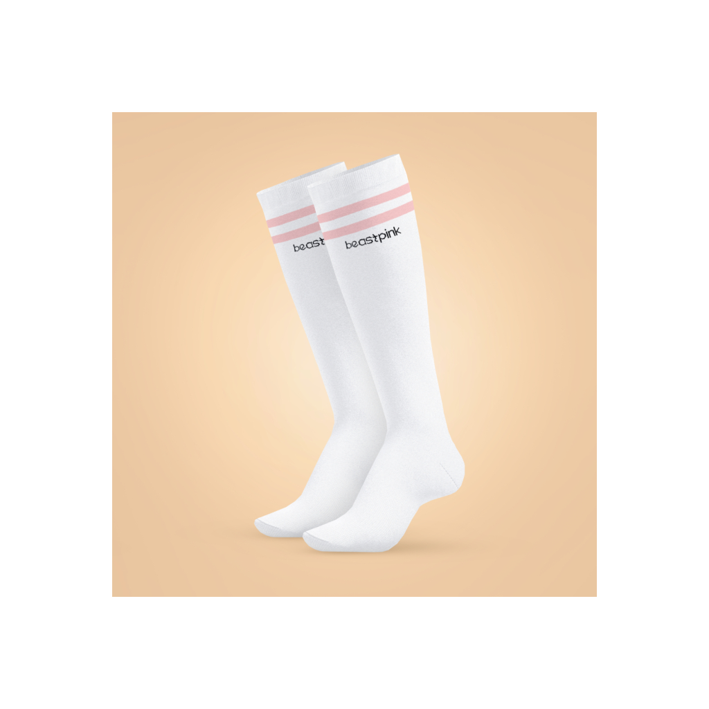 Podkolienky Knee High Socks White - BeastPink