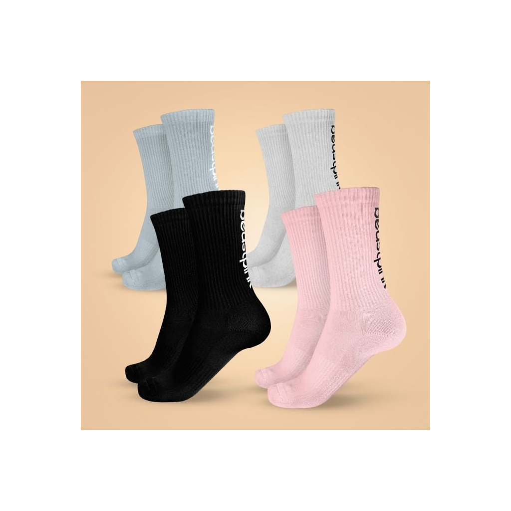 Tieto vysoké dámske ponožky majú jednoduchý jednofarebný dizajn, ktorý sa dobre kombinuje. Zdobí ich iba nápis BeastPink na strane lýtka, ktorým dáte svetu jasne najavo, že na sebe makáte. Hodia sa na bežné nosenie aj športové aktivity, ako je silový tréning, beh, cyklistika alebo turistika. Vďaka pohodliu, ktoré vašim chodidlám poskytnú, ich však budete chcieť nosiť aj doma.
