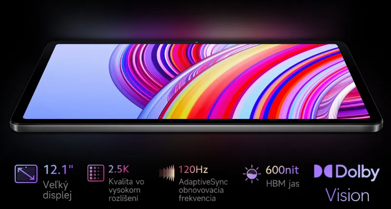 Tento displej má v rukáve esá, ktoré umocnia váš používateľský zážitok na maximum. 12,1” uhlopriečka tabletu Redmi Pad Pro vám v porovnaní s 10,6” obrazovkami poskytne až o 33 % väčšiu plochu pre viac zábavy. Dokonale plynulý obraz vám prinesie 120 Hz adaptívna obnovovacia frekvencia.