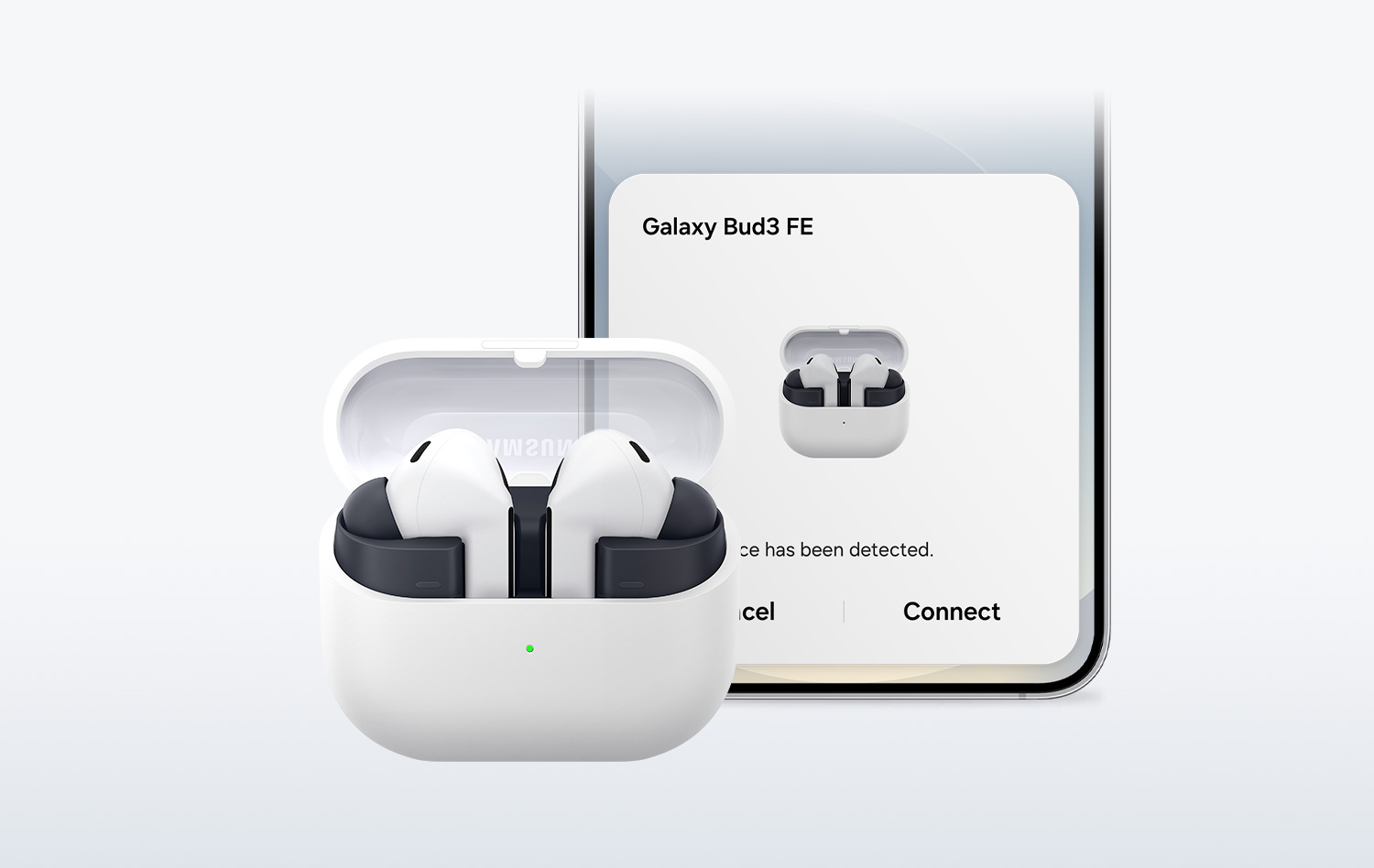 Pripoj slúchadlá Galaxy Buds3 FE ku všetkým svojim zariadeniam Galaxy. Stačí otvoriť nabíjacie puzdro a tým spustiť proces automatického párovania, alebo klepnúť na tlačidlo „Pripojiť“ na tvojom zariadení – a počúvanie môže začať.