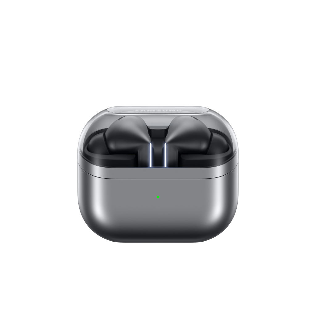 Vyzkoušej náš úplně nový design navržený pro optimální zvuk. Důmyslně vylepšené Galaxy Buds3 Pro se pyšní malou šikmou hlavou pro pohodlné nošení, které zpříjemní tvůj celkový zvukový zážitek, zatímco světelné indikátory ti umožní vyjádřit své pravé stylové já. Design bočnic zvýrazňuje elegantní pouzdro s průhledným krytem a jemným zaobleným tvarem, vybavené rozhraním USB-C a funkcí rychlého nabíjení.