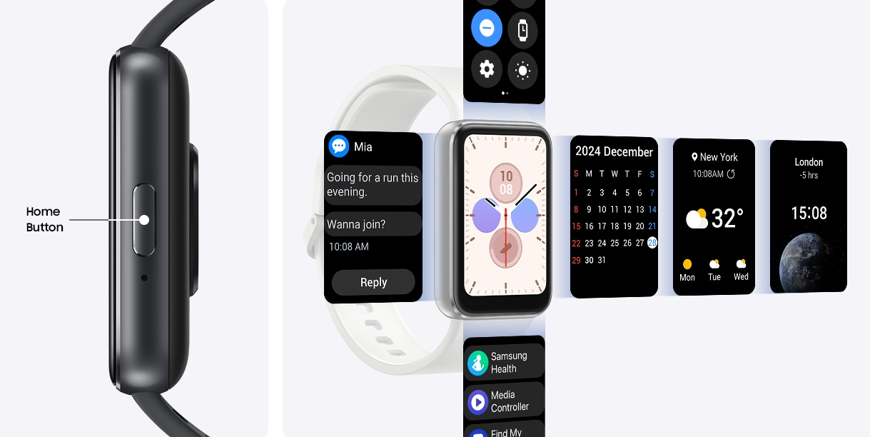 Ovládaj zariadenie bez námahy pomocou intuitívnych gest. Potiahnutím doprava zobrazíš oznámenia, potiahnutím doľava dlaždicové náhľad. Posunutím nadol otvoríš rýchlu lištu a pohybom nahor zase zoznam aplikácií. Potrebuješ sa ešte vrátiť na domovskú obrazovku? Jednoducho stlač tlačidlo Domov. Pri domácom tréningu je možné dvojitým stlačením tlačidla Domov prejsť na zoznam cvičení.